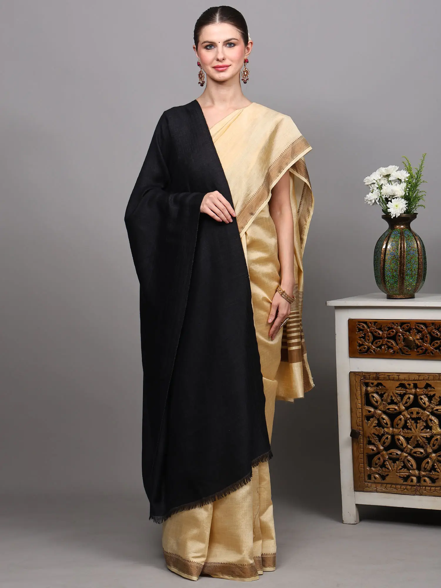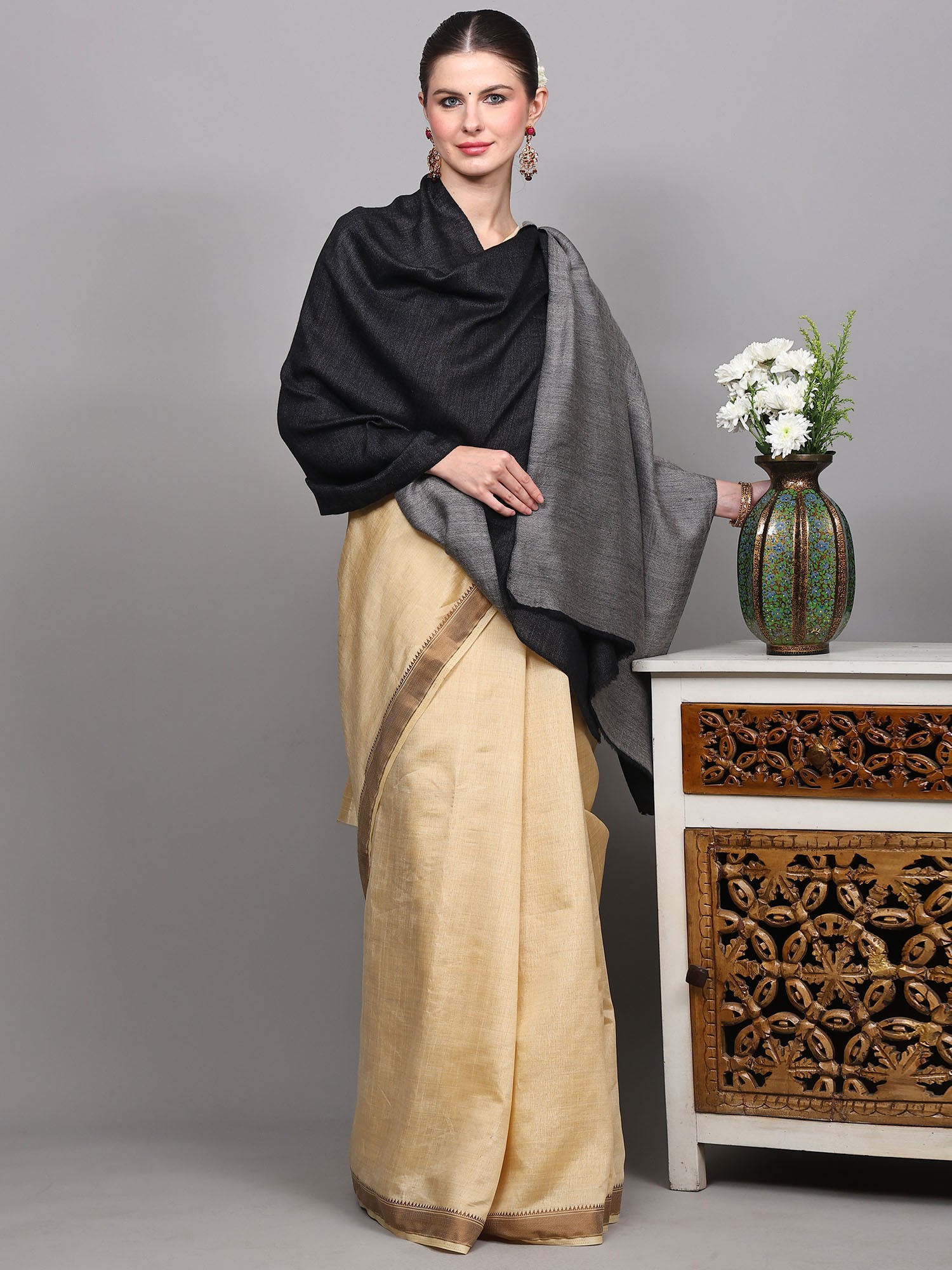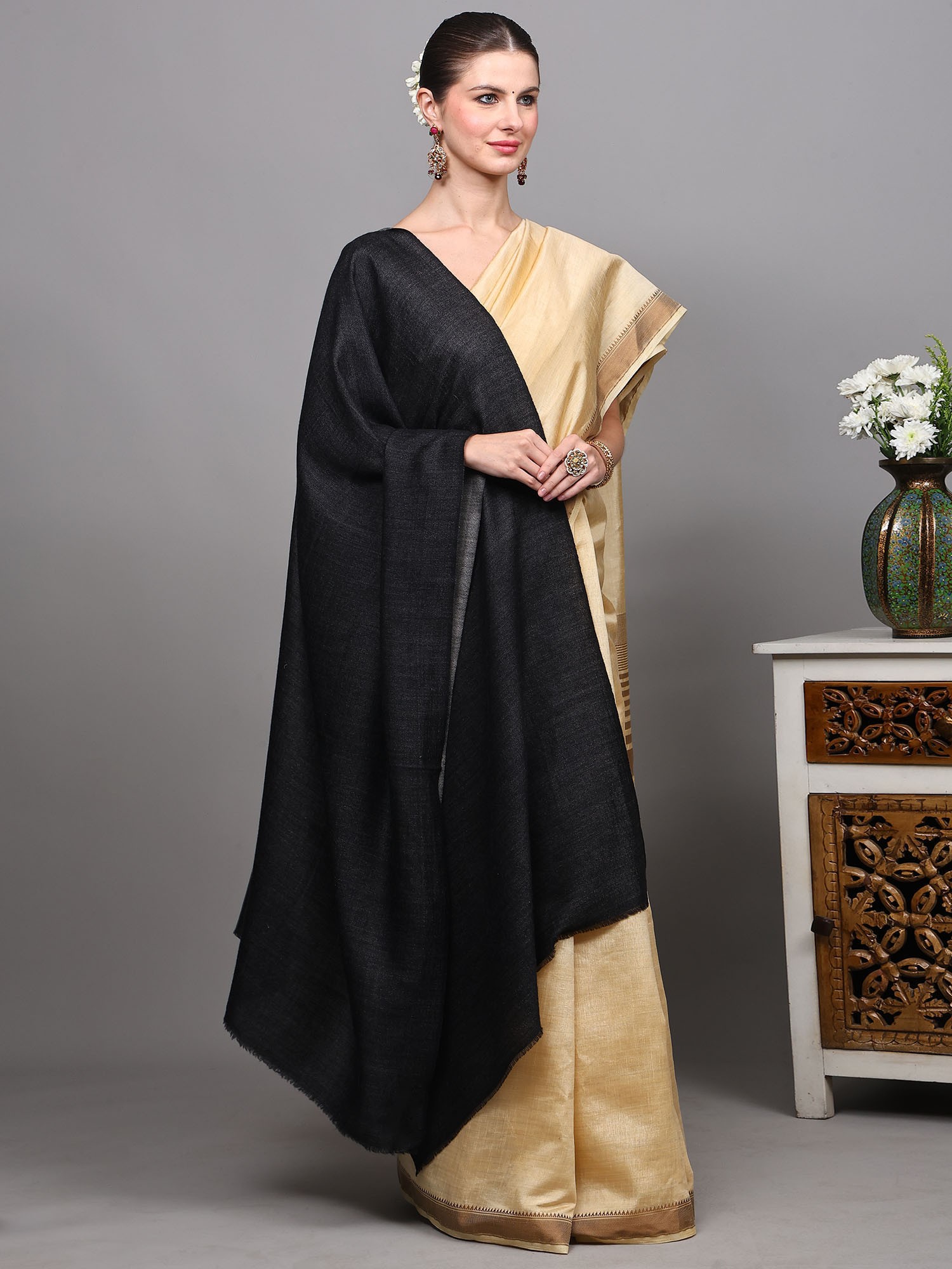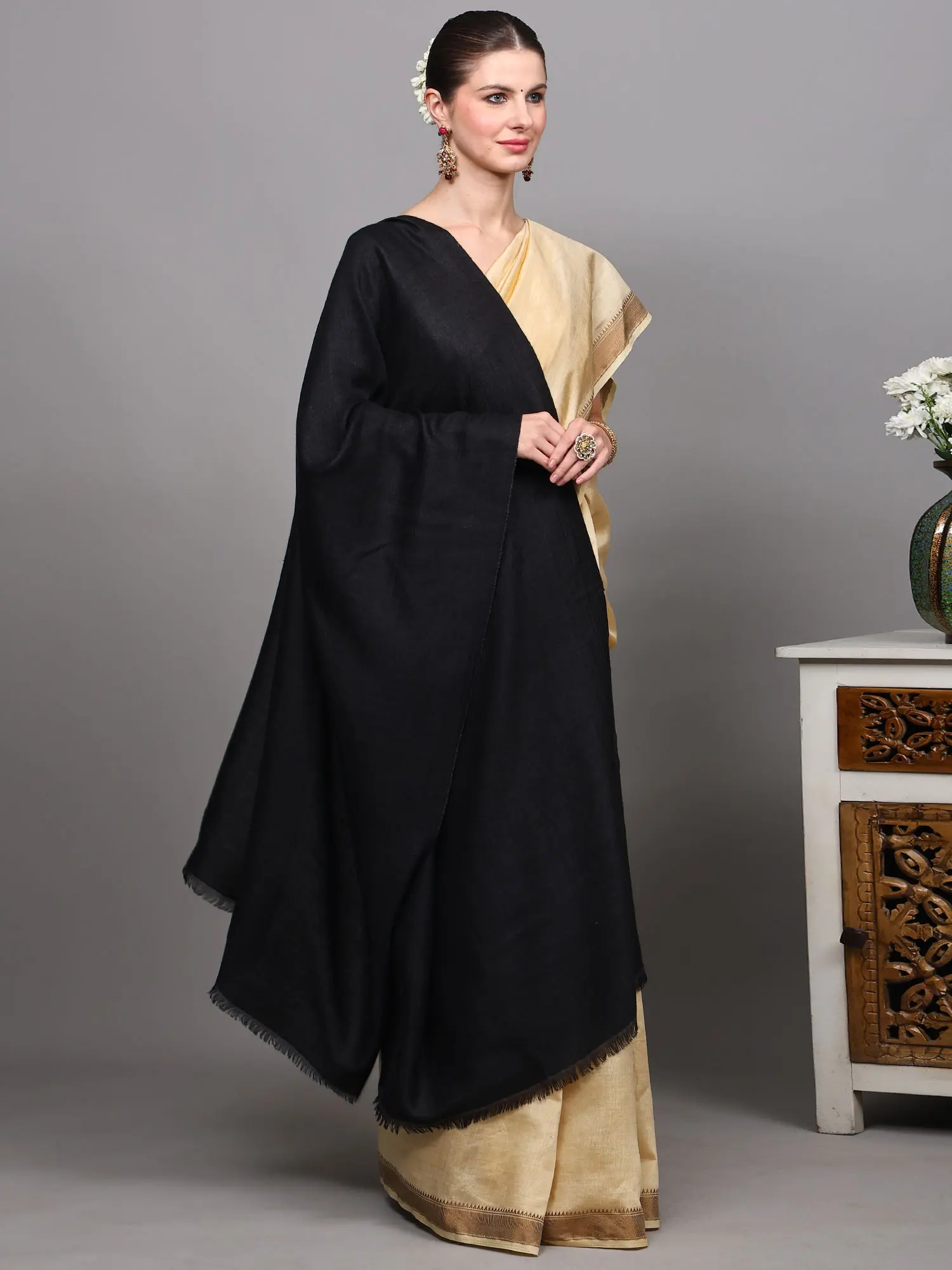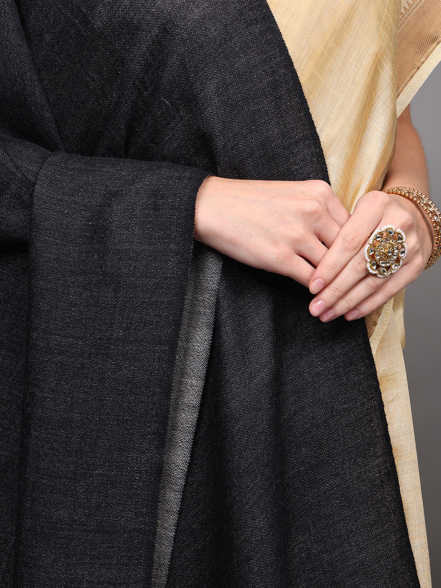 Woolen Plain Shawl from Kutch with Mirror Embroidery