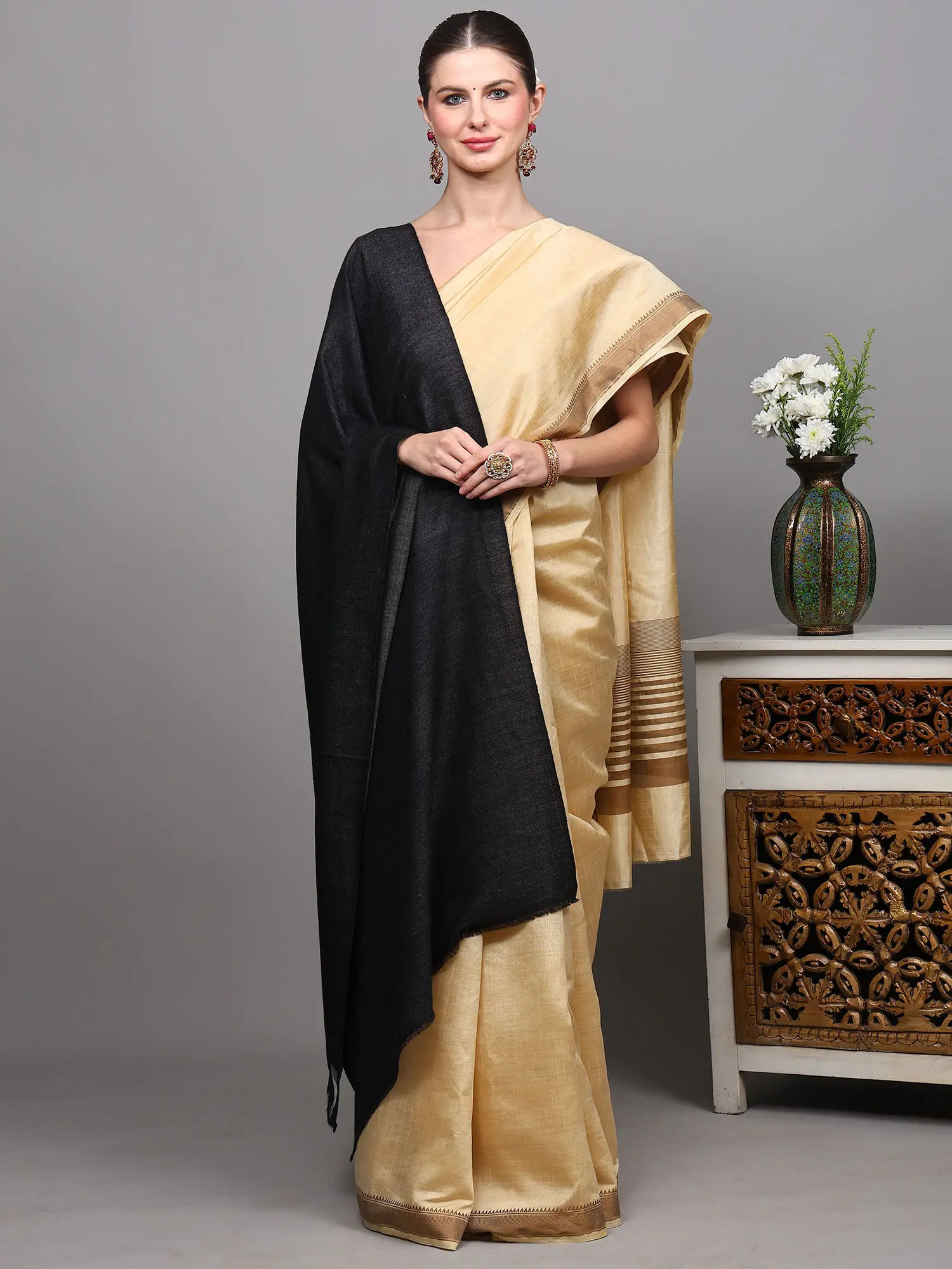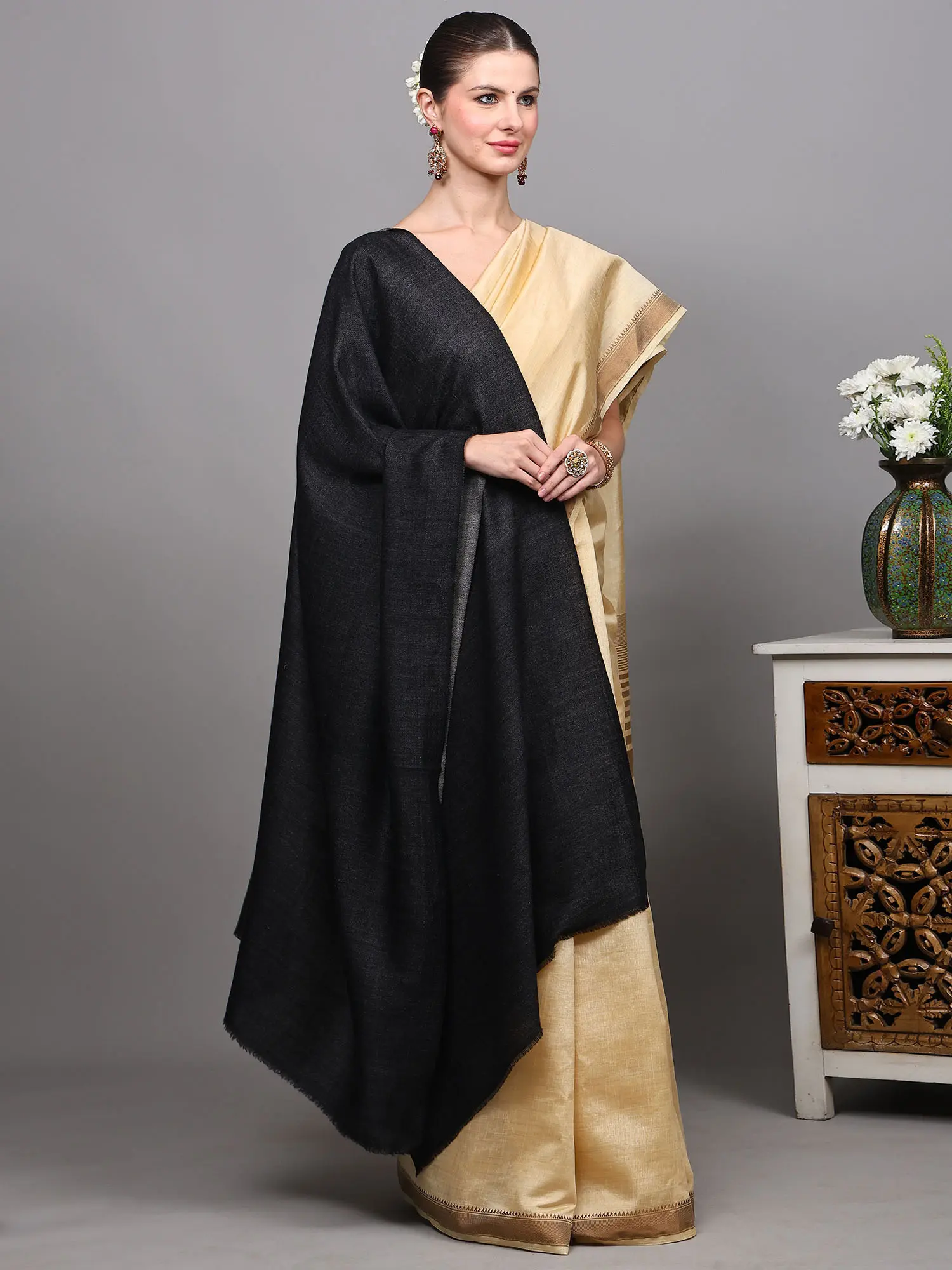 Discover the unparalleled luxury and versatility of this exquisite plain reversible pashmina stole. Hailing from Amritsar, a city renowned for its rich textile heritage, this stole embodies the essence of traditional craftsmanship blended with contemporary style. Crafted from the finest pashmina, it offers a sublime softness and warmth that is truly incomparable, making it a cherished addition to any discerning wardrobe. The beauty of this stole lies in its inherent simplicity and its thoughtful reversible design. One side presents a deep, sophisticated black, offering a classic and versatile foundation for countless outfits. The other side boasts a subtle, rich tone that complements the darker hue, allowing you to effortlessly switch between two distinct looks. This dual functionality means you can adapt your styling to suit any occasion, from a formal evening event to a casual daytime gathering. The plain weave ensures a smooth, elegant drape, allowing the natural beauty of the pashmina to take center stage.