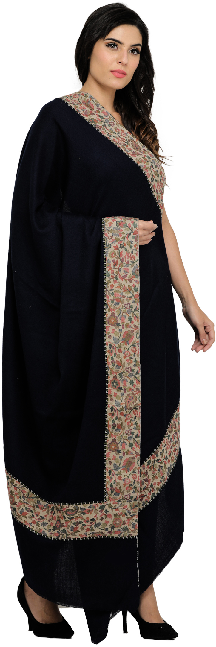 Pure Wool Kani Jamawar Shawl from Amritsar with Embroidered Flowers and Paisleys