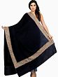 Black-Onyx Kani Jamawar Shawl from Amritsar with Woven Floral Jaal and Paisleys