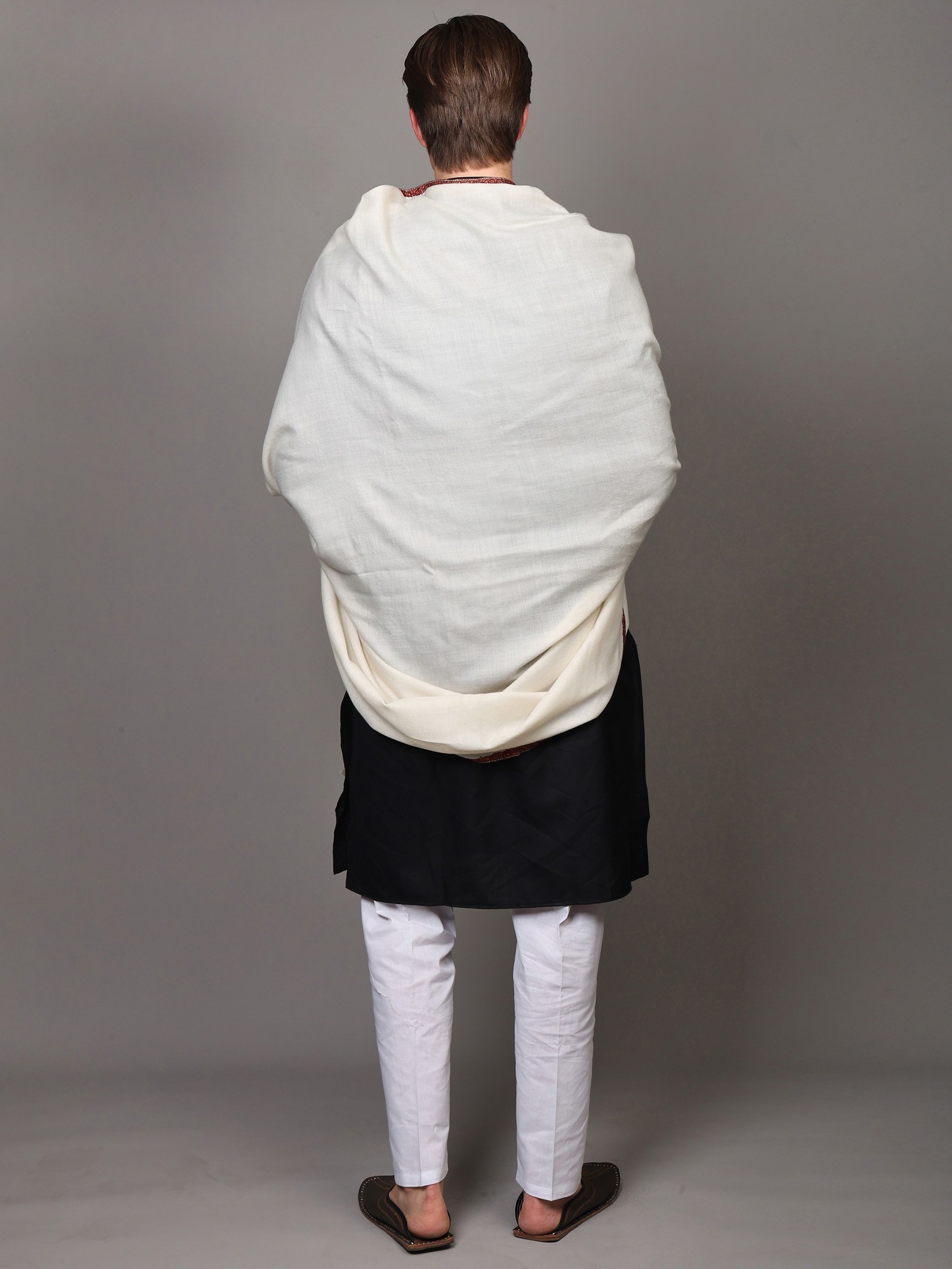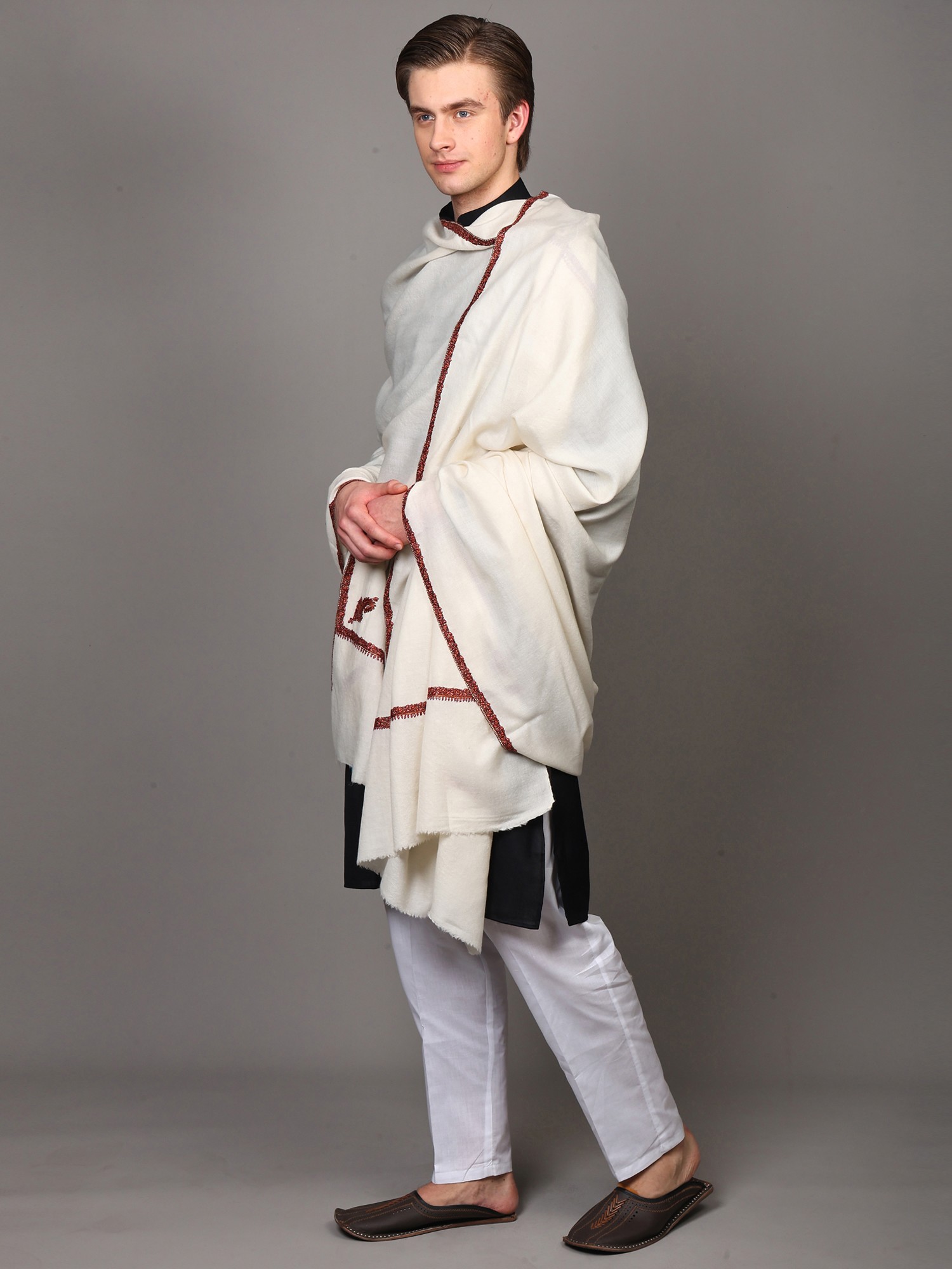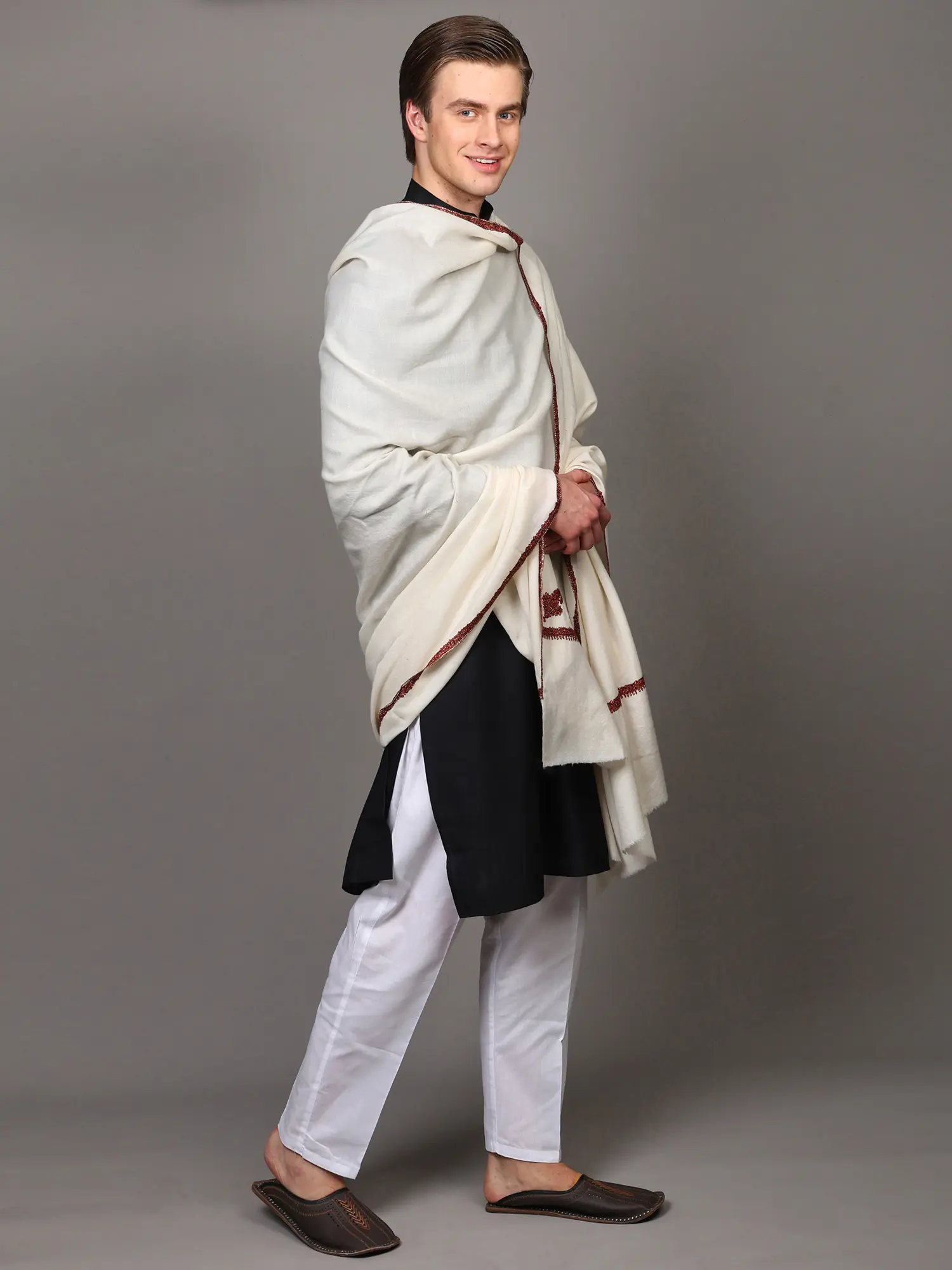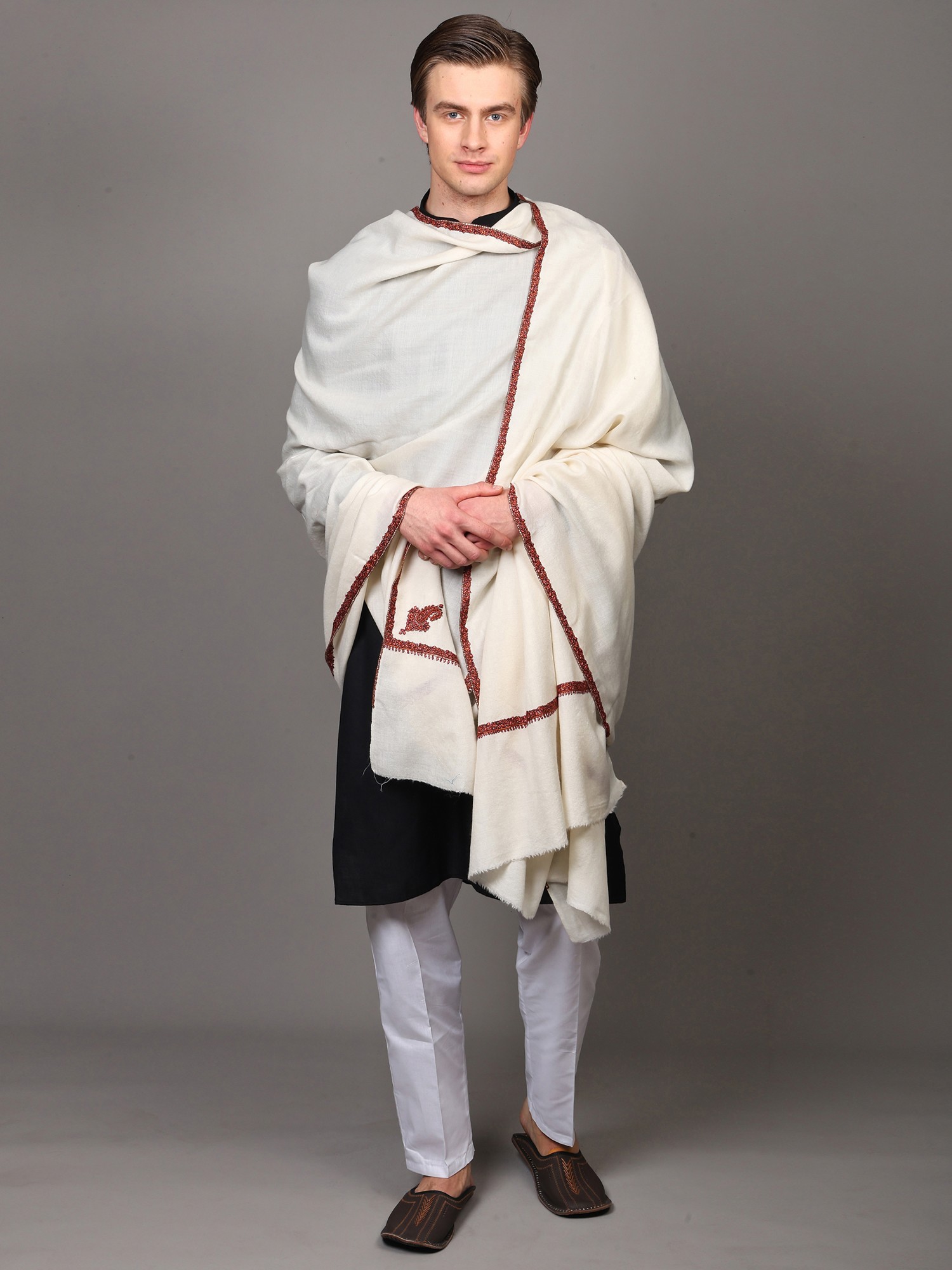 Pure Wool Men's Shawl from Kashmir with Floral Sozni Hand Embroidered Border