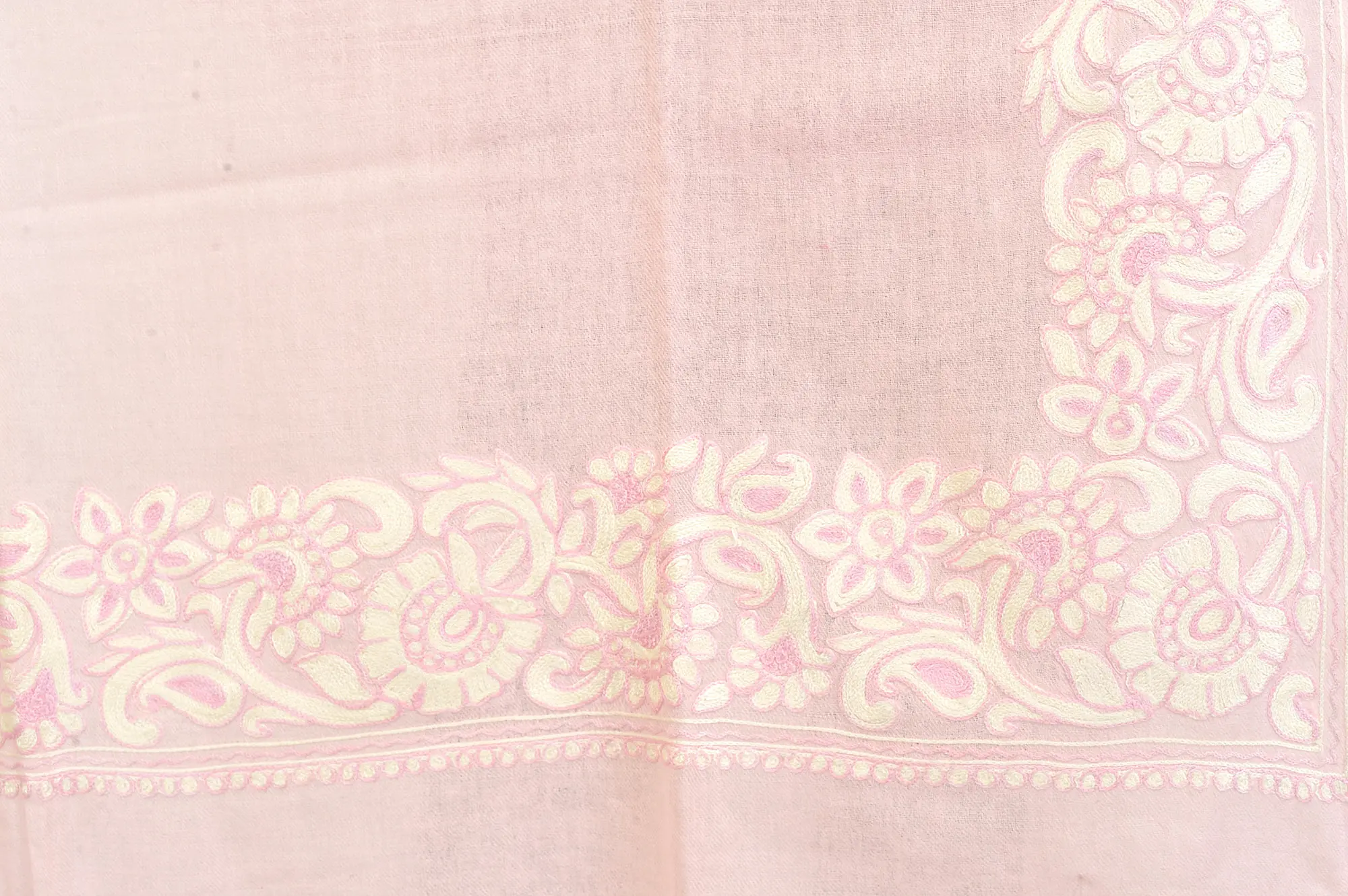 Plain Stole from Amritsar with Aari Embroidered Flowers on Border