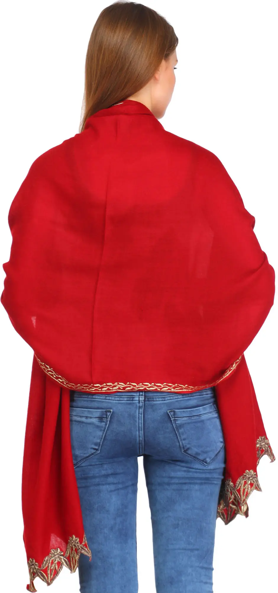Elegance meets tradition in our Plain Stole from Amritsar. The stole features Zari thread-embroidery, a skill that has been passed down through generations in Amritsar. The chosen colors exude the grandeur of the region. The intricate Jagged Border design is a testament to the timelessness of Amritsar's artistic heritage. This stole is a fusion of old-world charm and contemporary style, allowing you to carry a piece of Amritsar's design legacy wherever you go.
