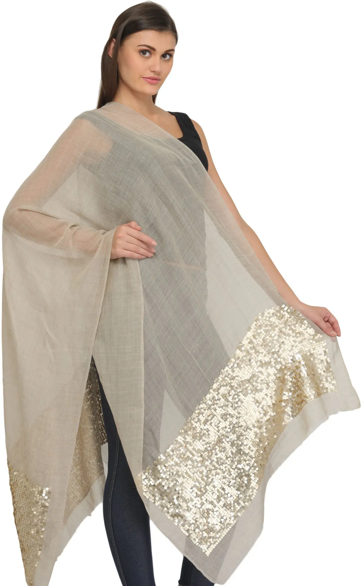 Elevate your style with our Plain Stole featuring densely embroidered sequins on the border. This stole is a reflection of expert craftsmanship. The chosen colors reflect modern trends, while the sequin embroidery adds a touch of grandeur. Sequin embellishments have endured through generations, and this stole showcases the perfect harmony between tradition and contemporary fashion. When you wrap yourself in this stole, you adorn yourself with a piece that glistens with heritage and elegance, staying in line with the latest fashion trends.