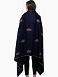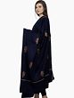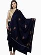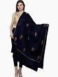Medieval-Blue Diamond Weave Tusha Stole from Kashmir with Hashidar Hand Embroidery on Border