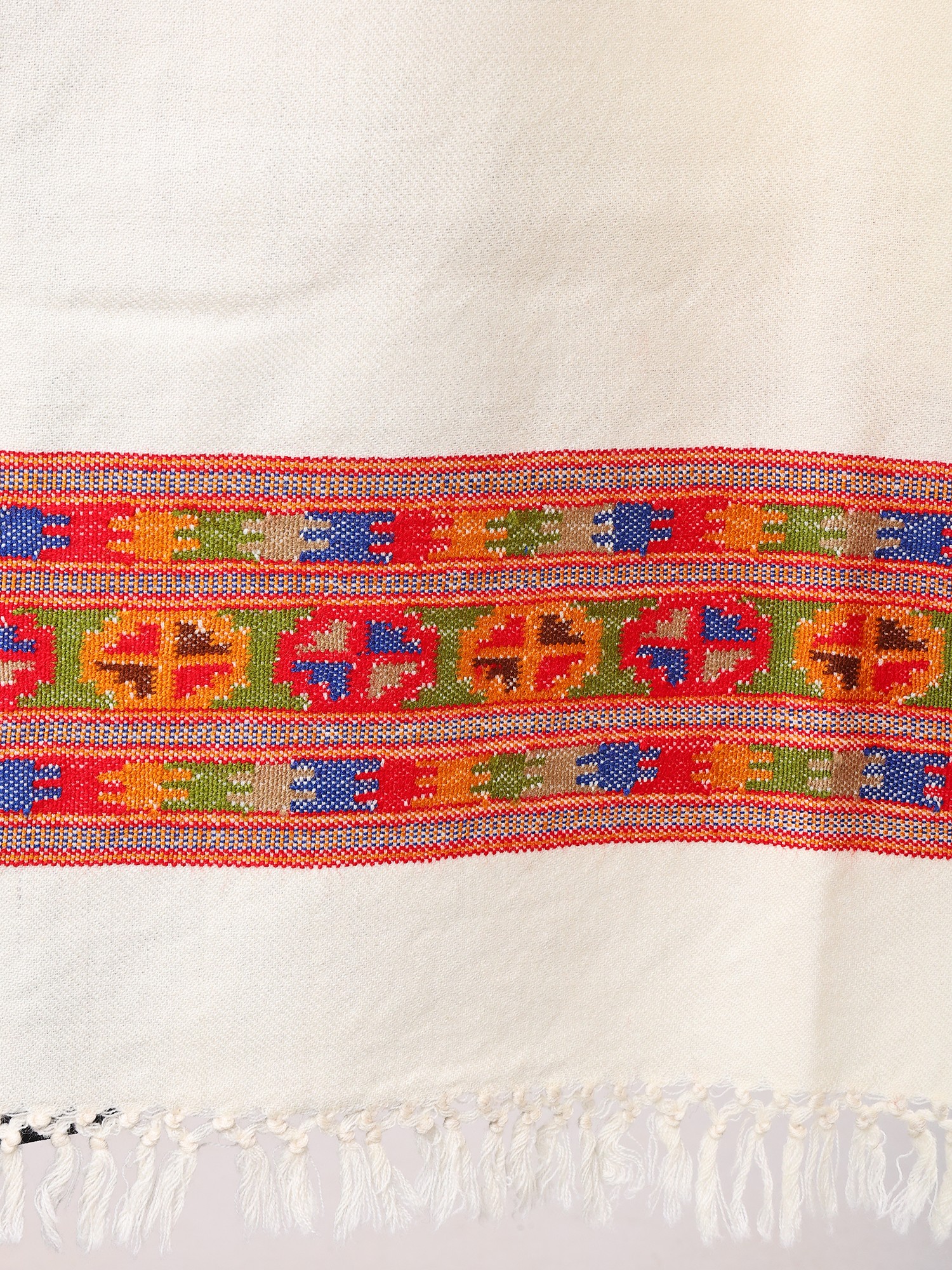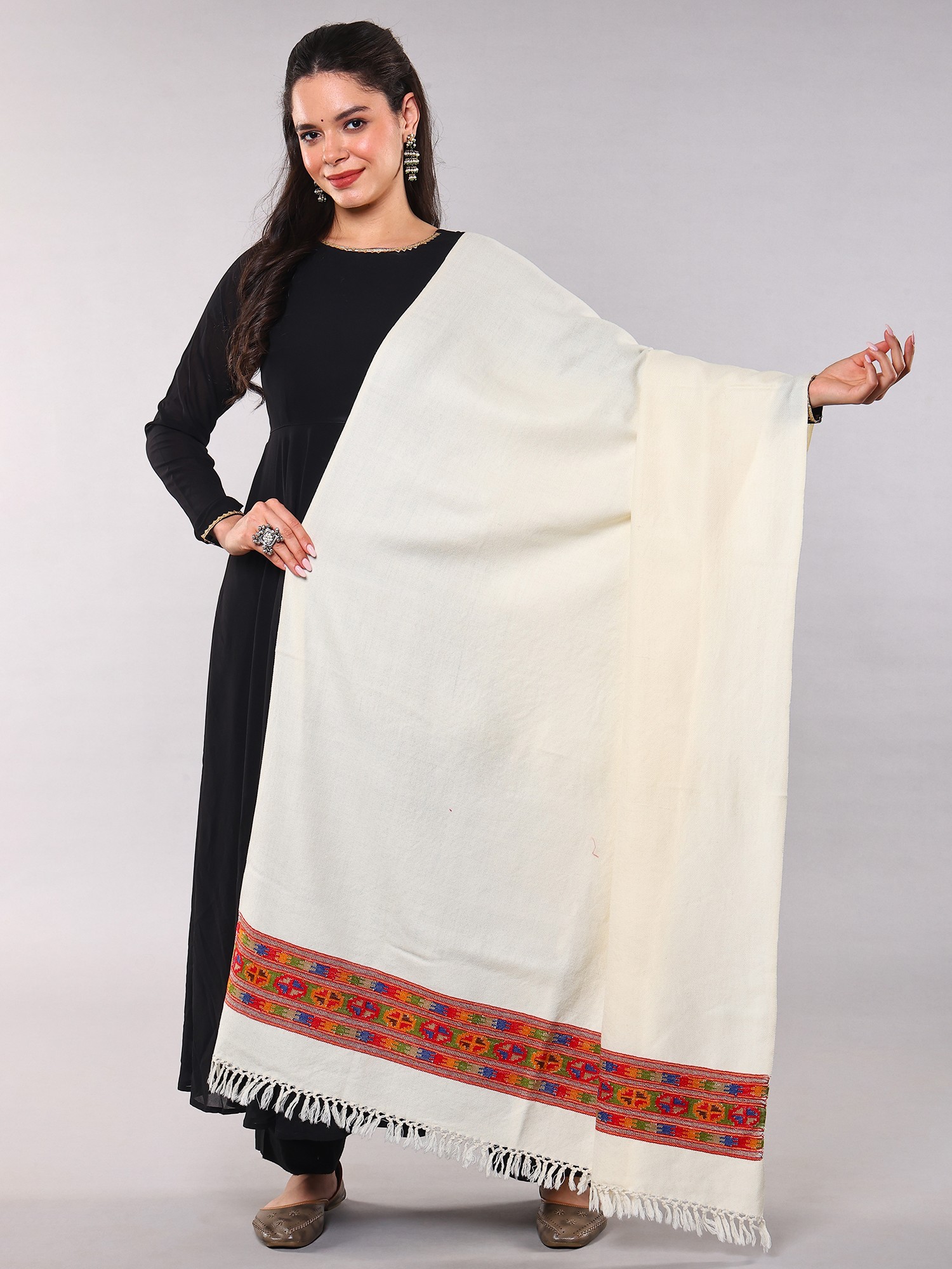 Stole from Kullu with Kinnauri Woven Border in Multicolor Thread