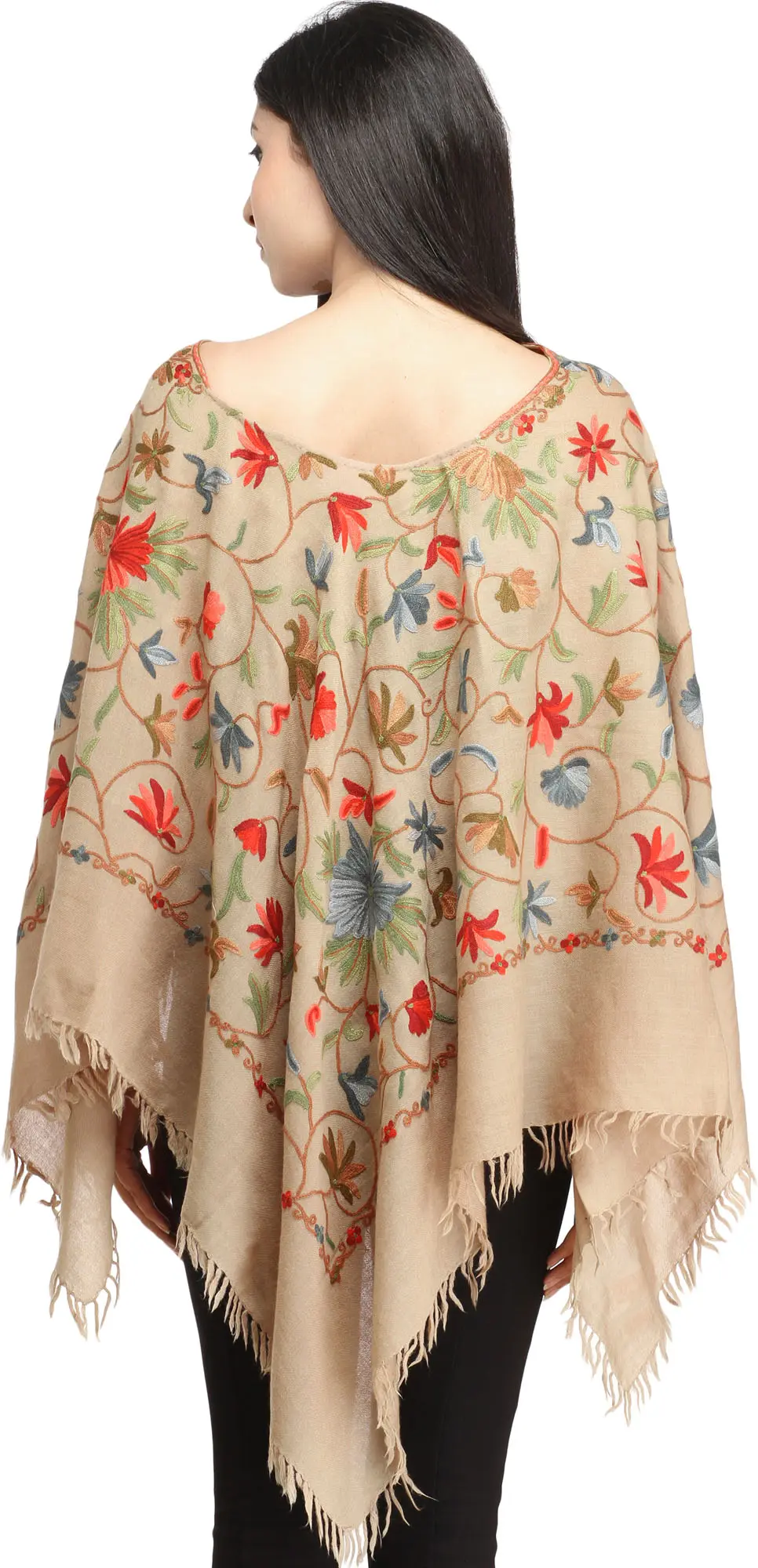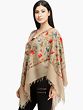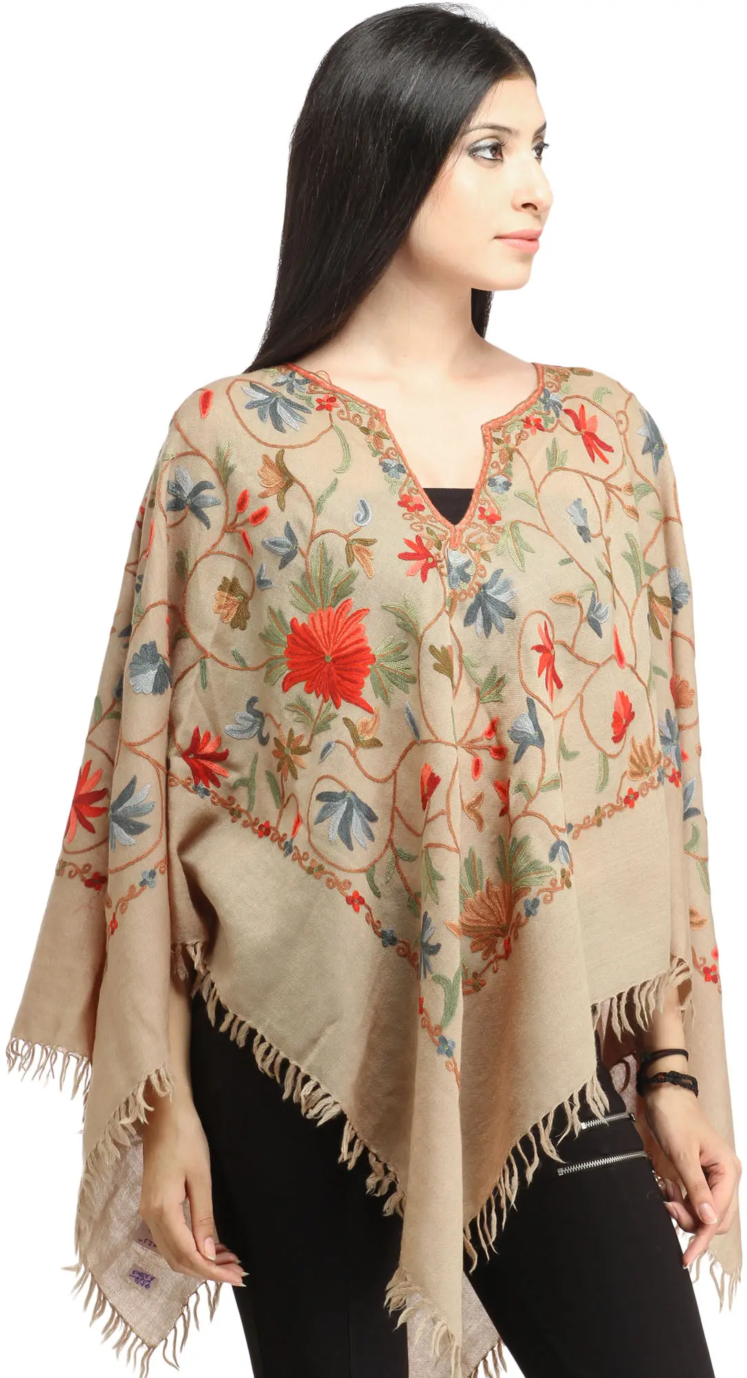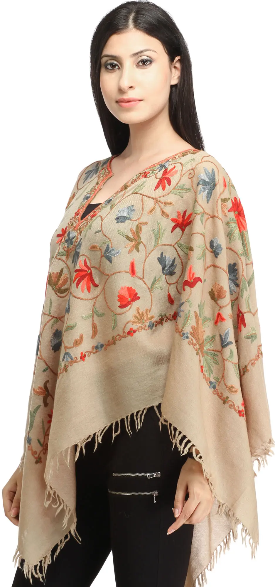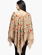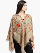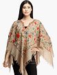 Plaza-Taupe Poncho from Kashmir with Aari Hand-Embroidered Flowers