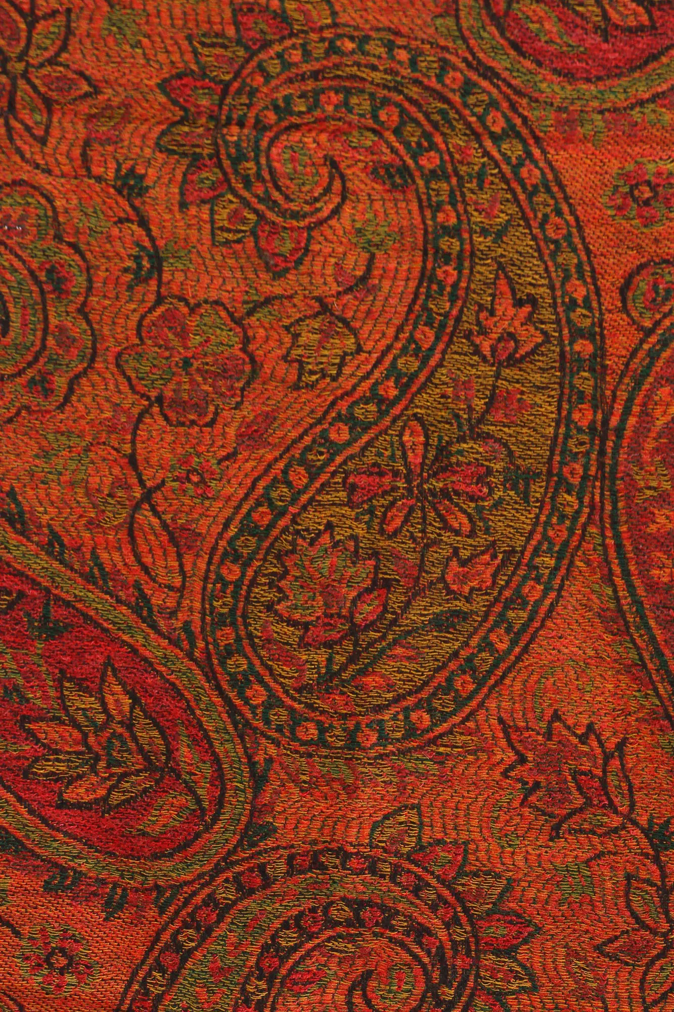 Reversible Two-Ply Wool Shawl with Woven Floral Vines and Paisleys