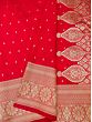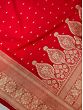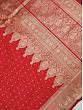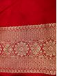 Though Banarasi Sarees in red color are exclusively associated with bridal couture, with this easy-on-the-pocket Katan silk saree, you can go for a traditional Banarasi silk saree in red, without it being your wedding day.