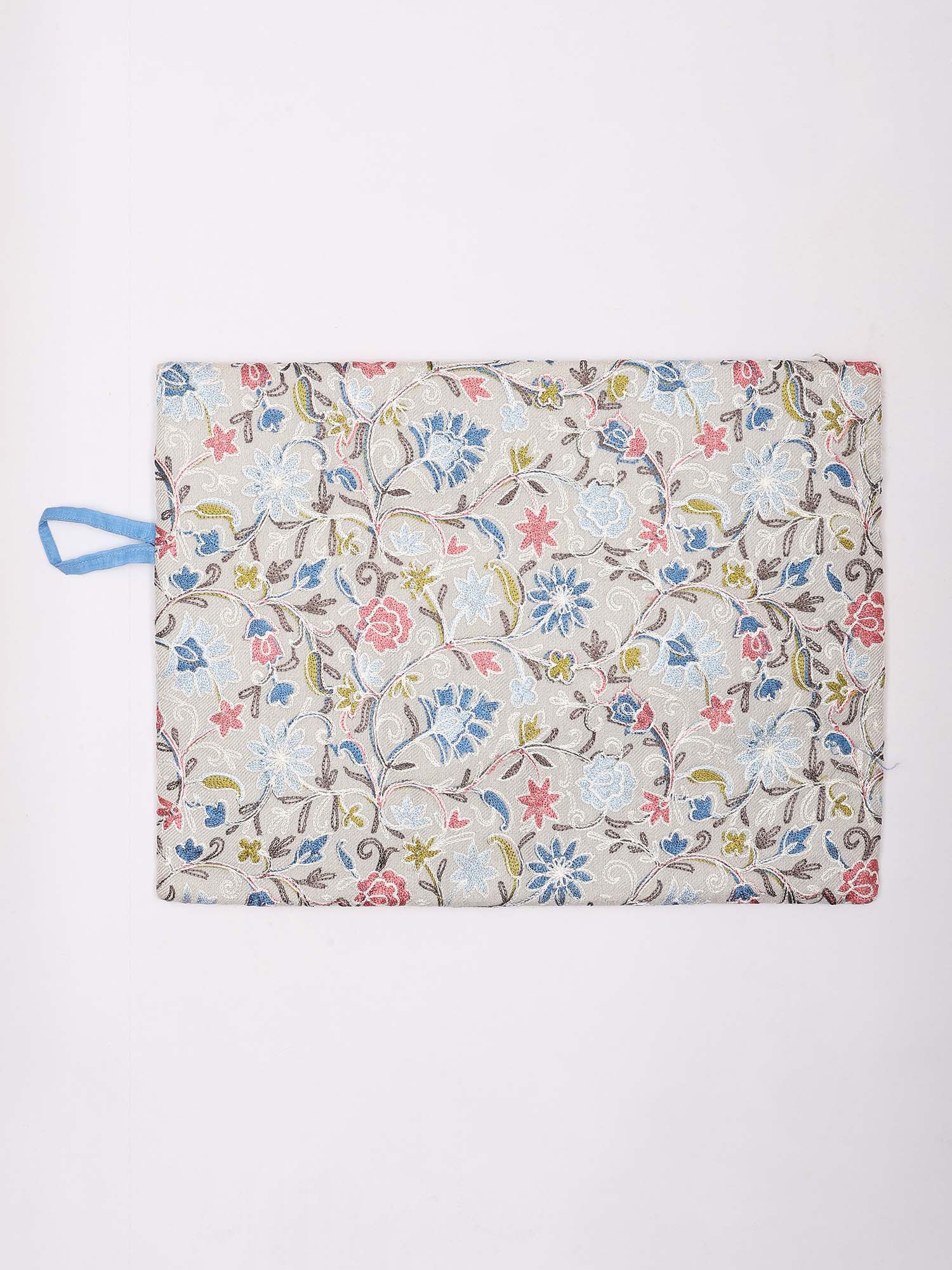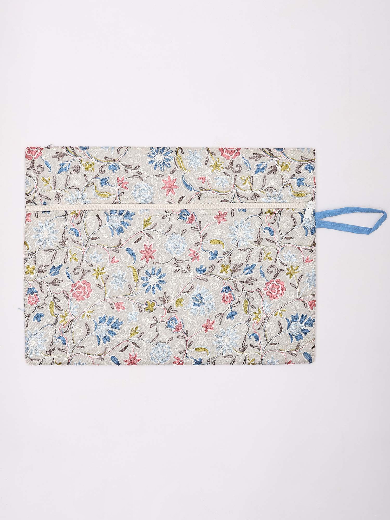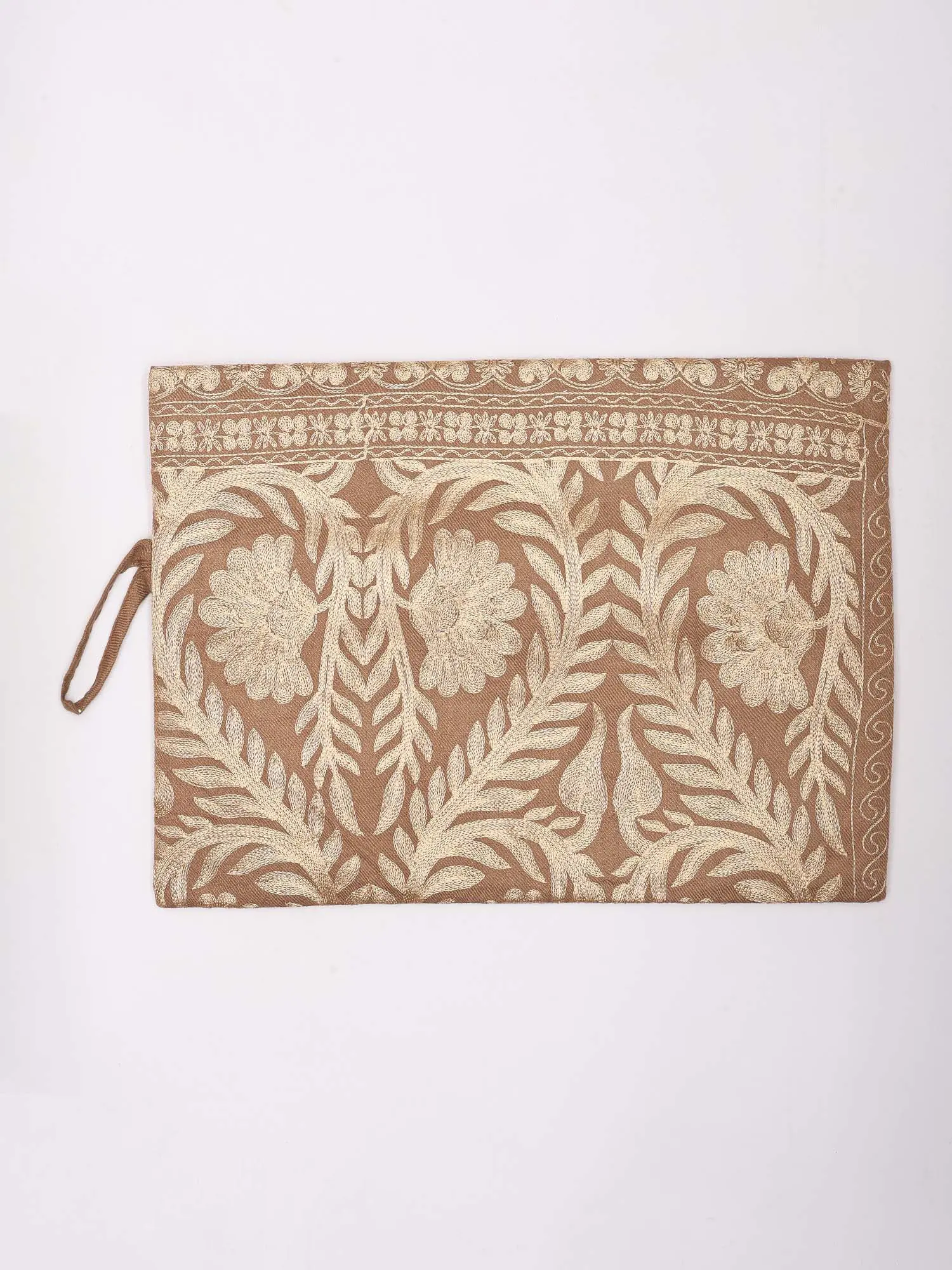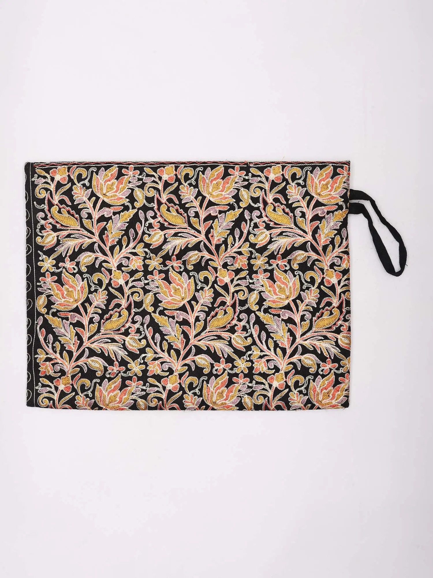 Pouch Bag with Aari Embroidered Flowers and Hand Wrist Strap