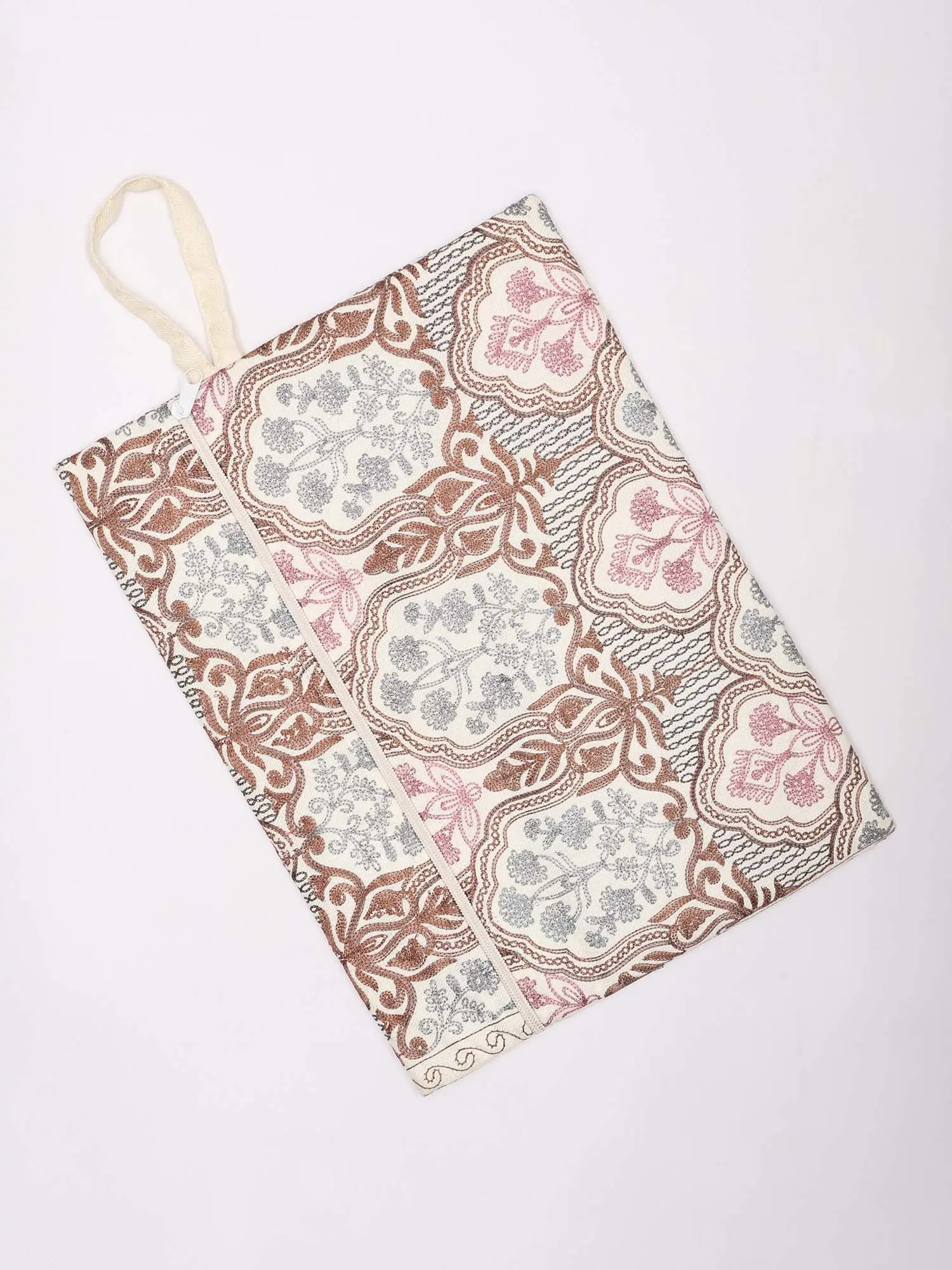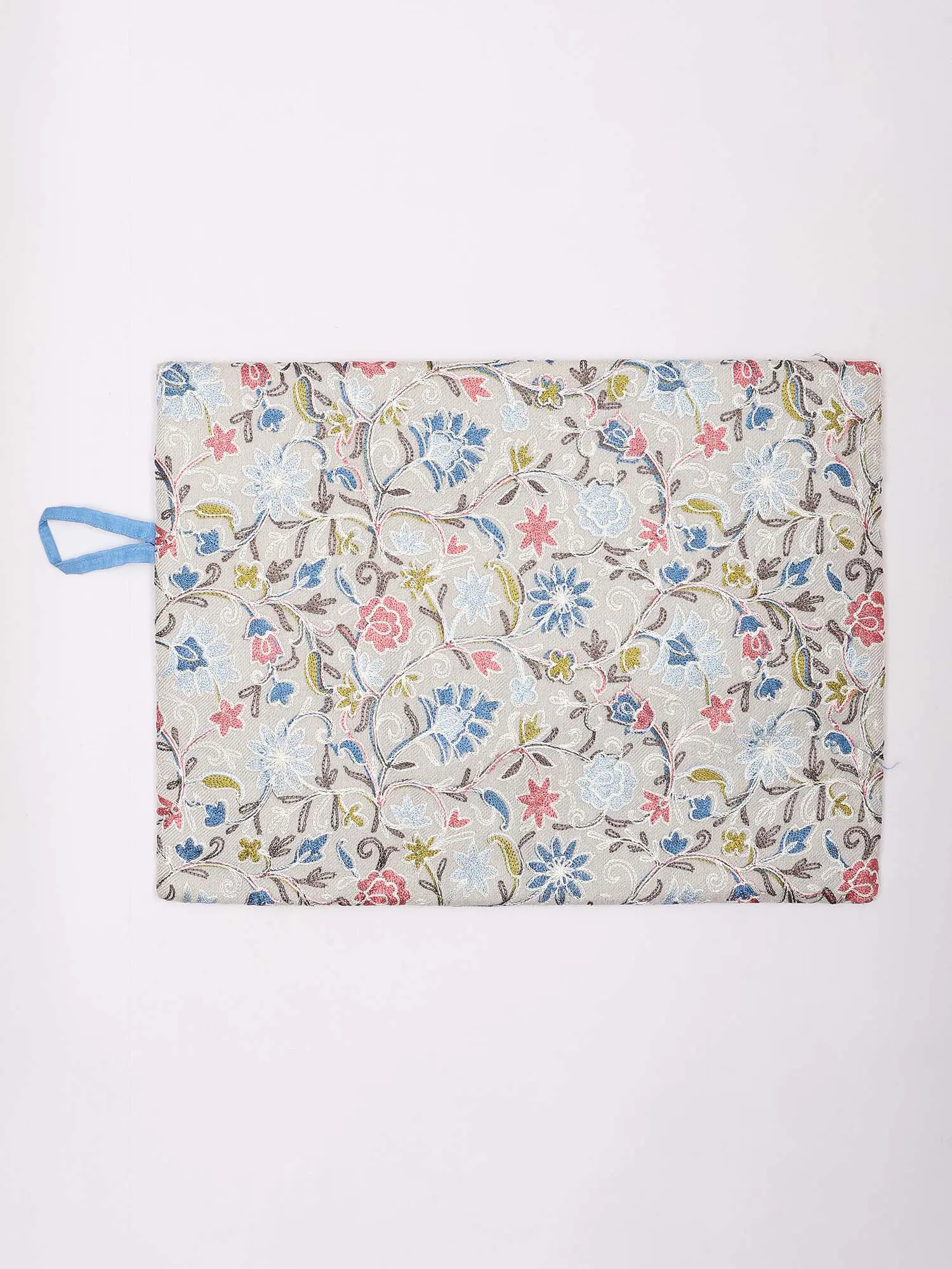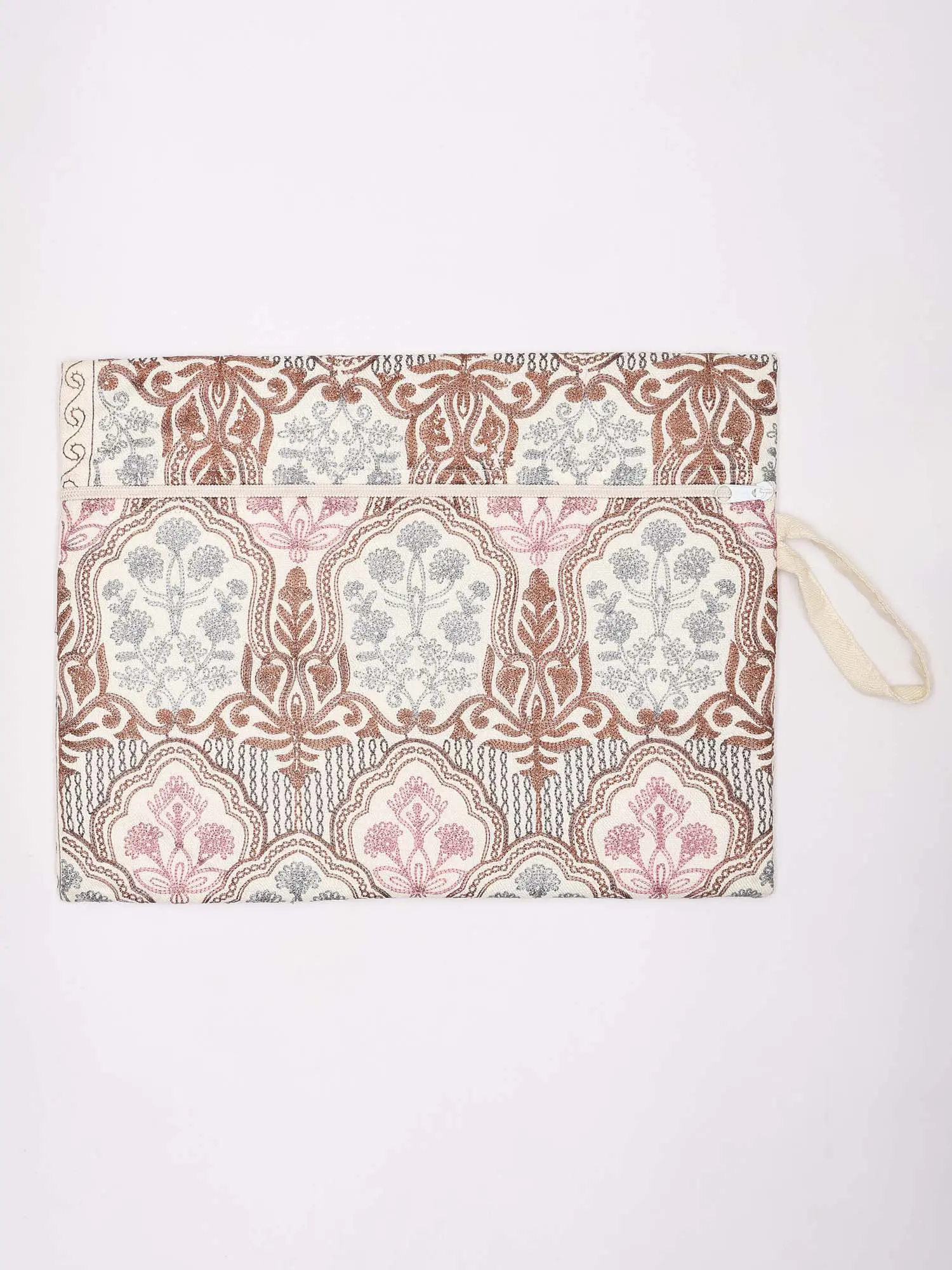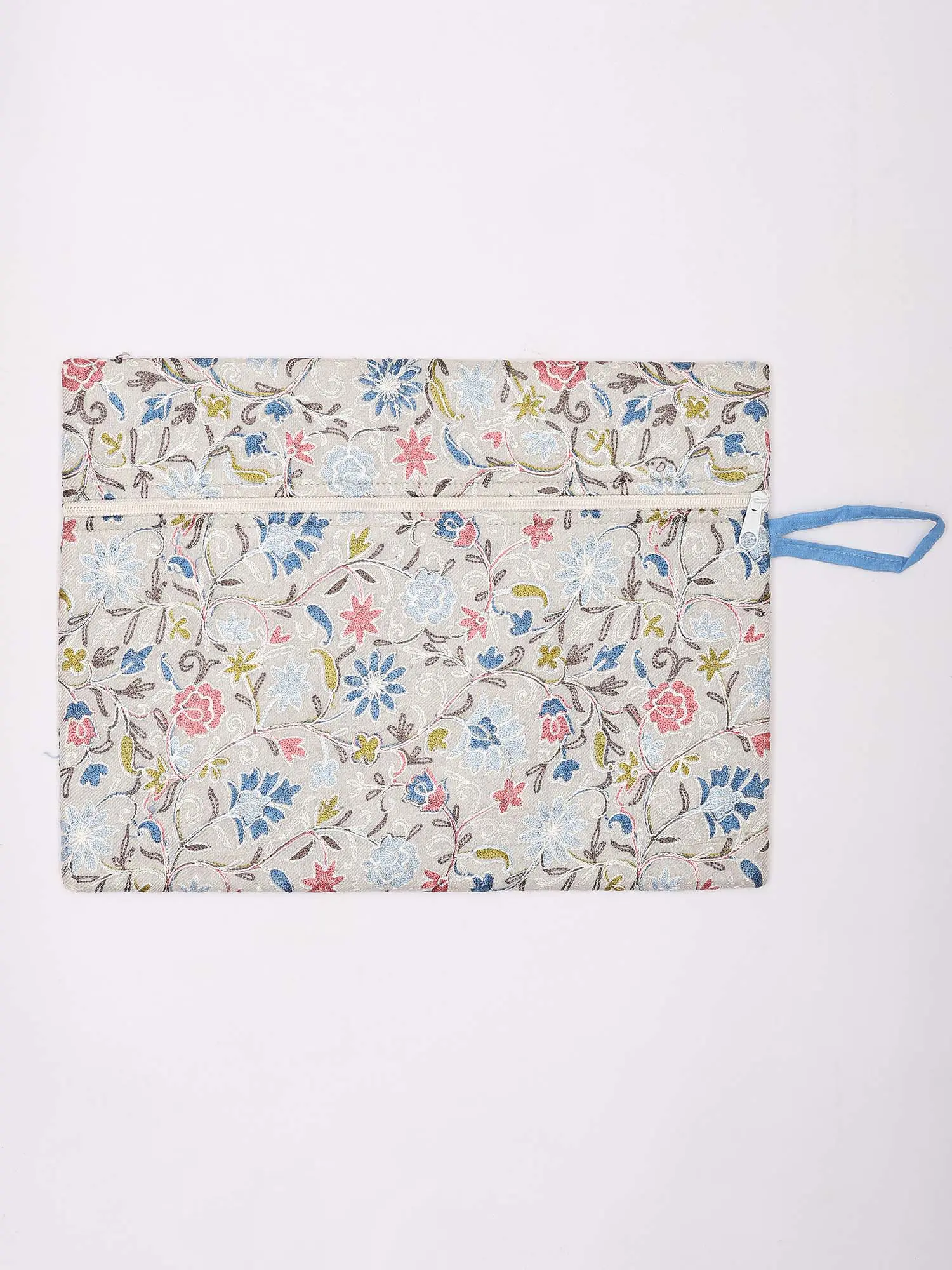 Pouch Bag with Aari Embroidered Flowers and Hand Wrist Strap