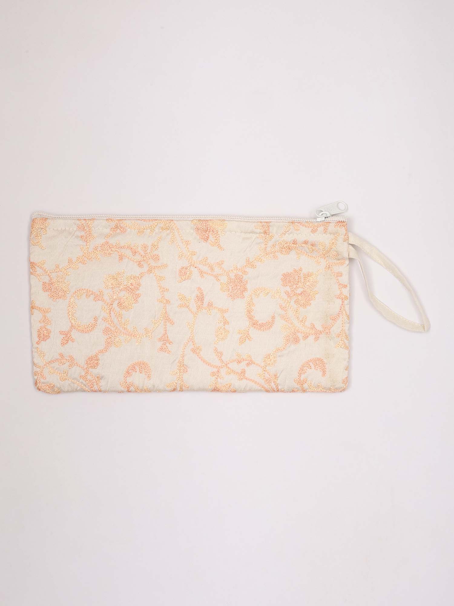Clutch Bag from Jaipur with Crewel Embroidered Flowers and Mirrors