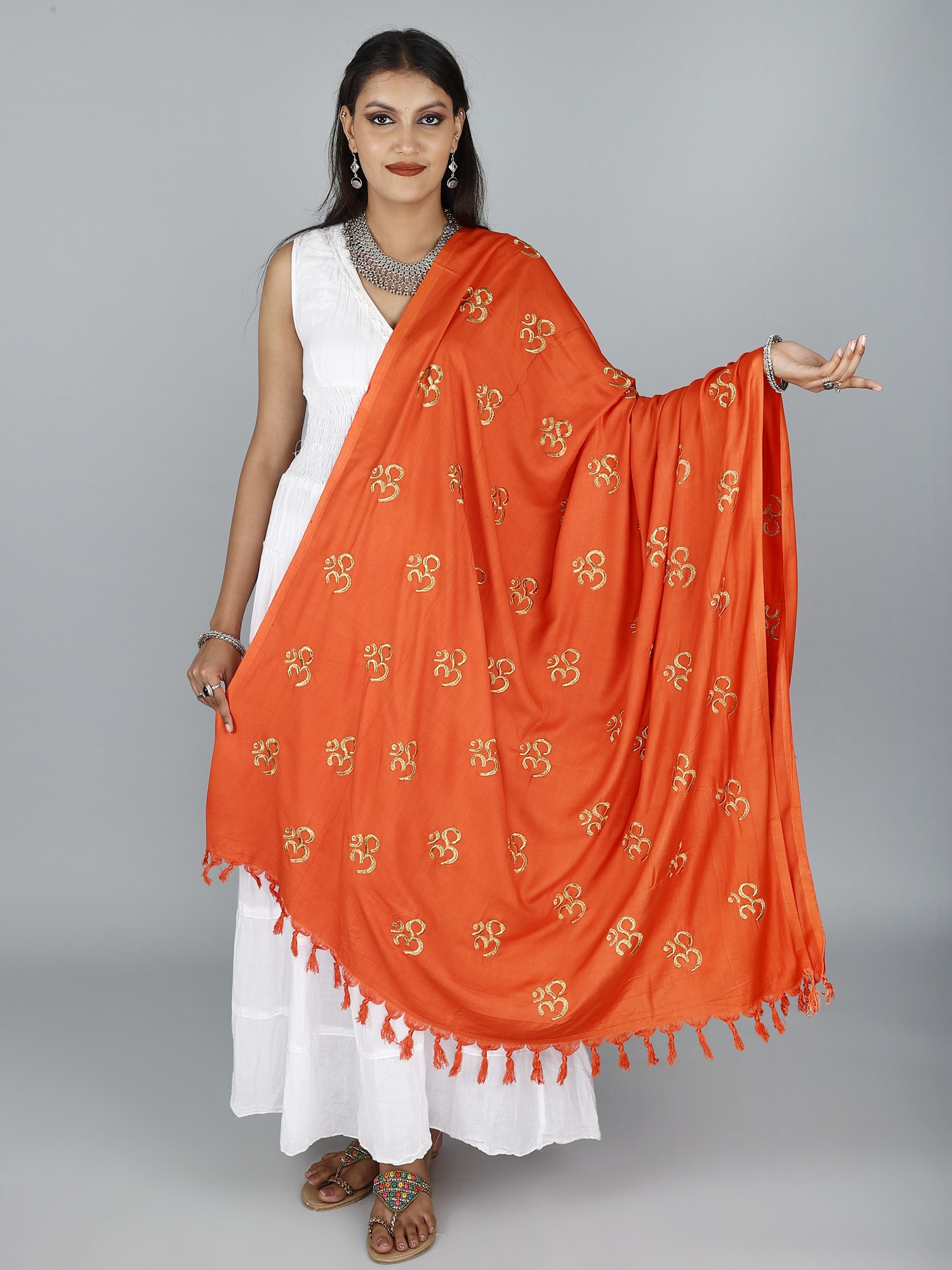 Wrap yourself in divine elegance with our Prayer Shawl adorned with Zari Embroidered Om Motif, a symbol of spiritual grace. Crafted from soft fabric, this shawl becomes a canvas where spirituality meets artistic finesse. The Zari embroidery adds a touch of sacred charm, it's a symbol of faith and cultural richness. Immerse yourself in the charm of spiritual tradition, and let the Prayer Shawl with Zari Embroidered Om Motif be your expression of refined grace.