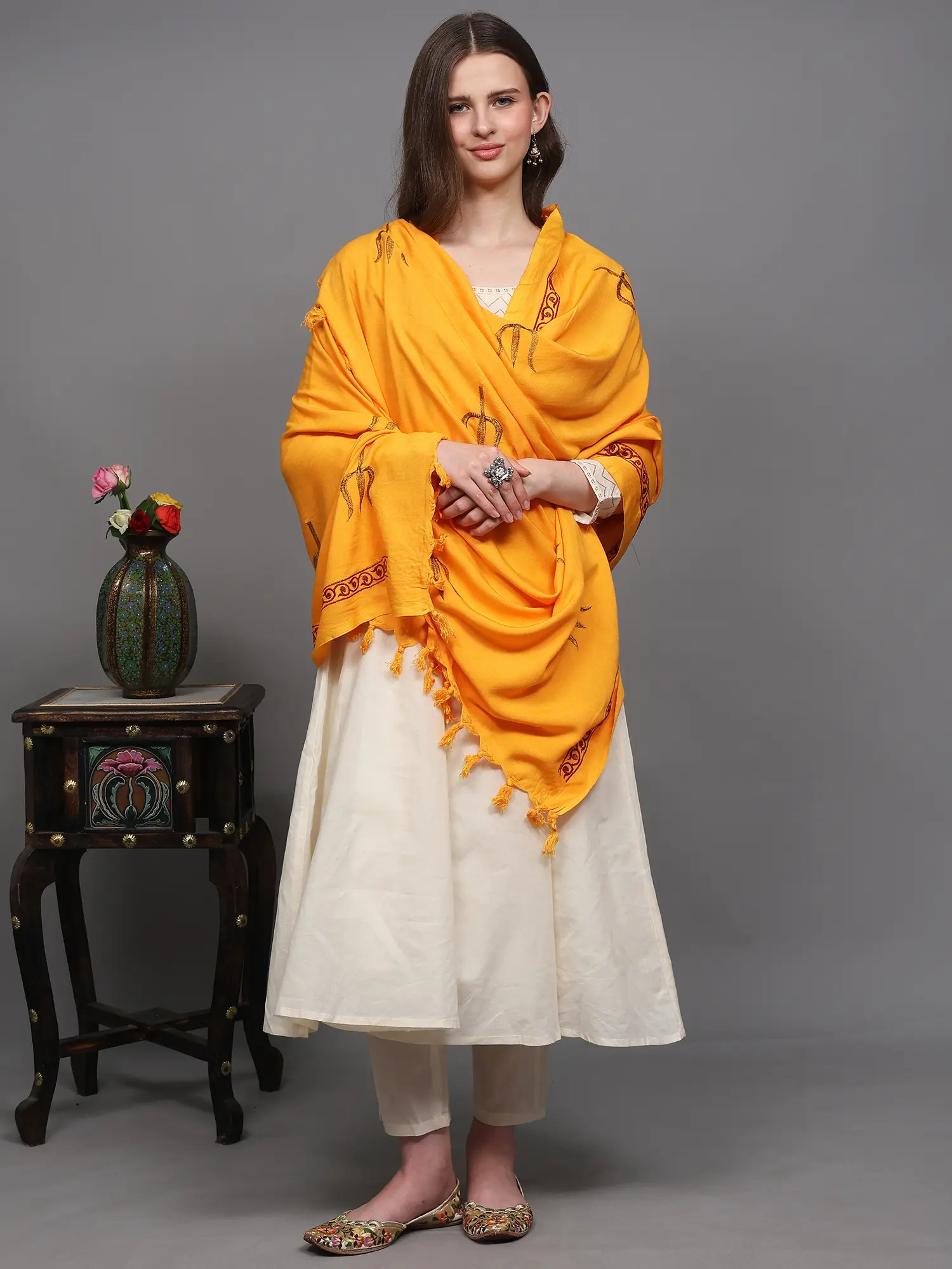 Pale-Marigold Prayer Shawl Printed Goddess Durga Figure