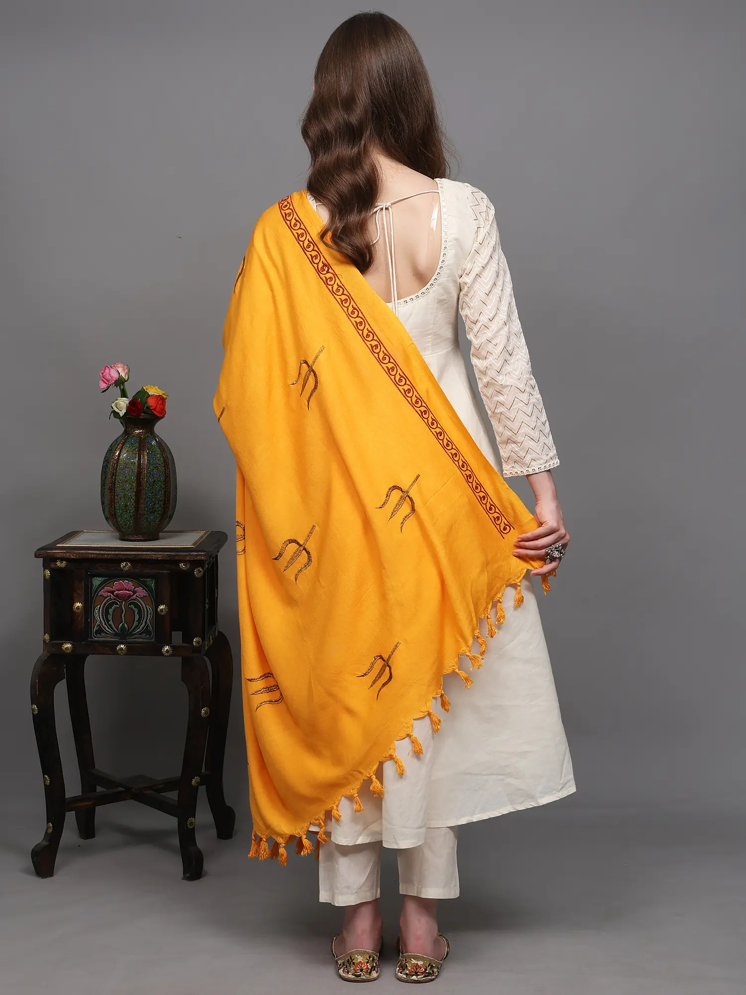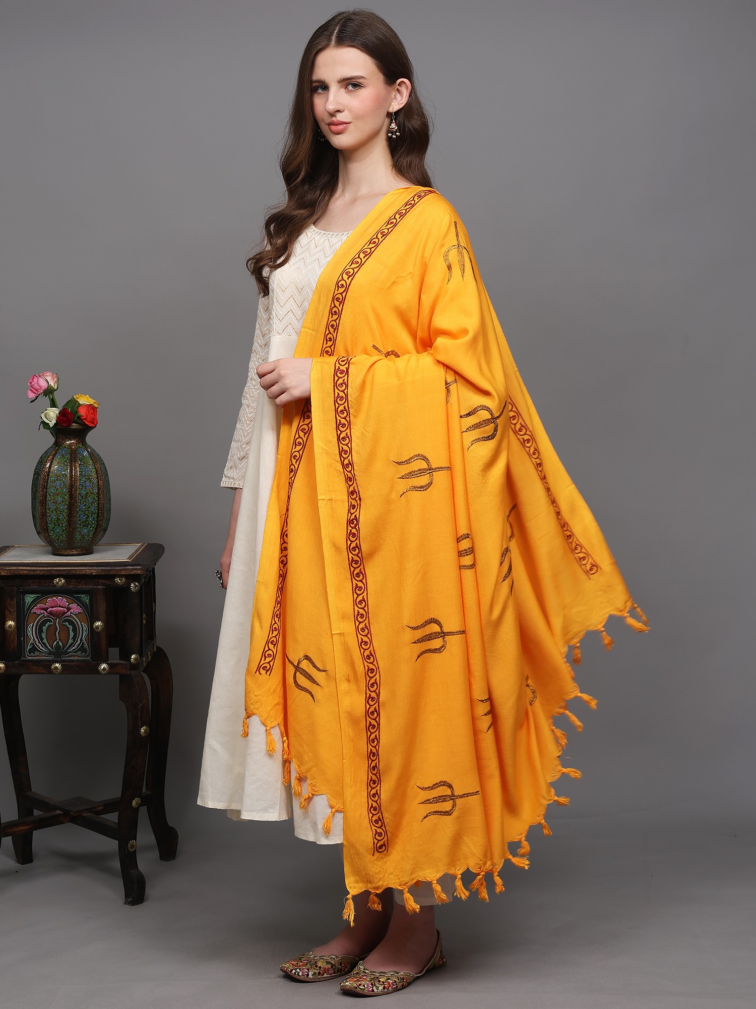 Prayer Shawl with Zari and Thread Embroidered Dual Color Om Motif