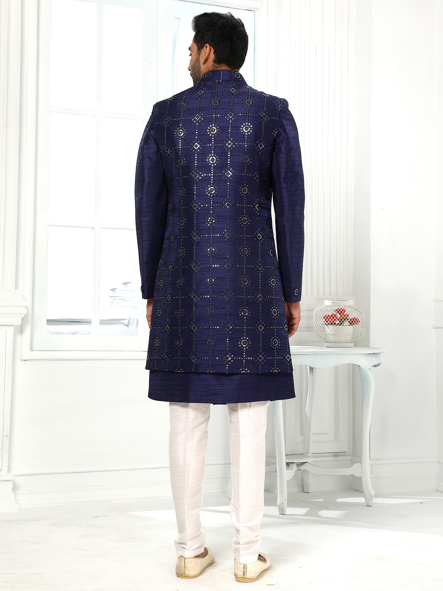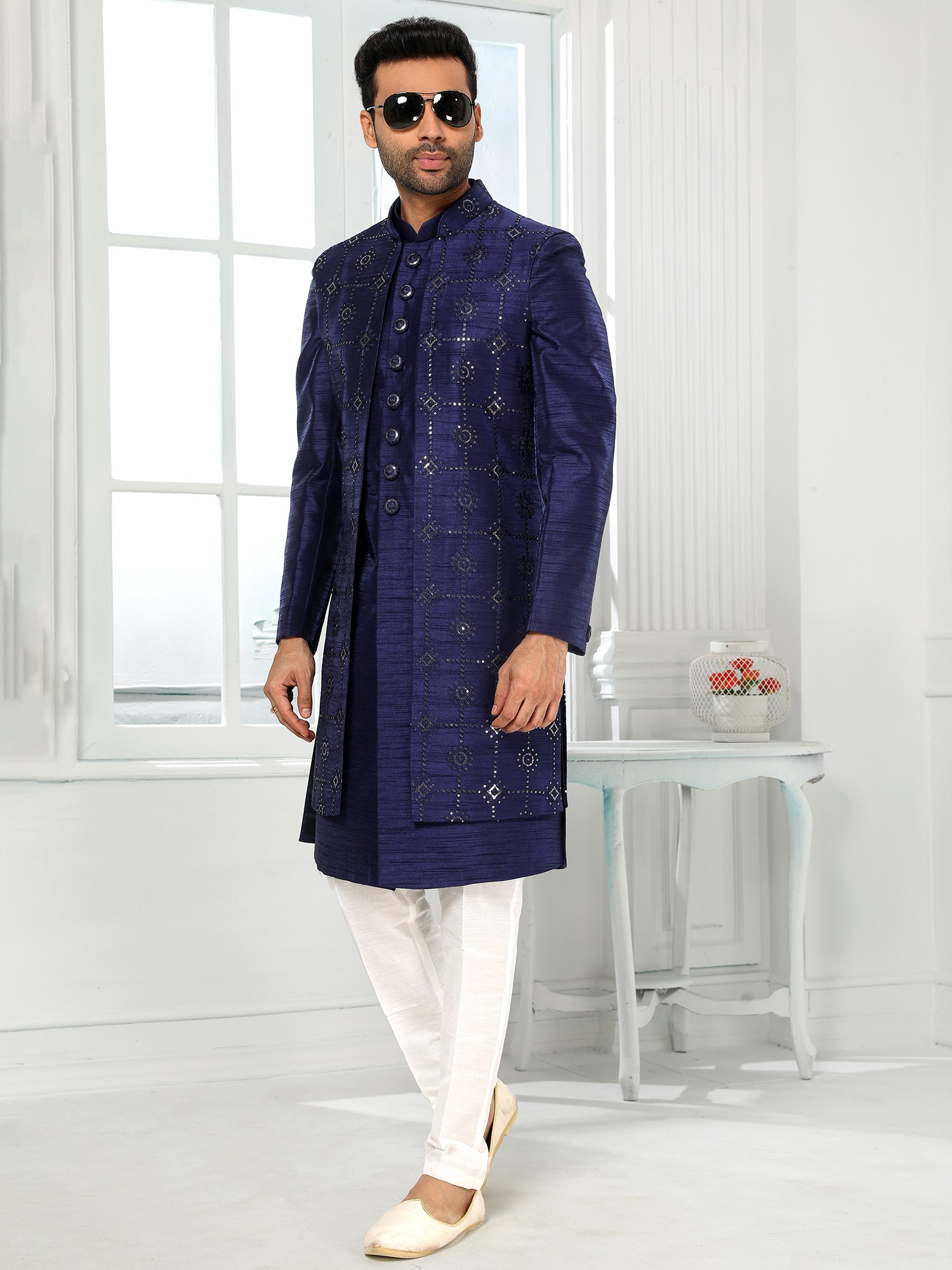 Picture yourself at a lavish wedding, a sophisticated reception, or a festive cultural gathering, radiating confidence and style. This ensemble is ideal for the groom, a distinguished guest, or anyone seeking to make a memorable entrance. It pairs effortlessly with classic juttis or loafers, allowing you to curate a complete look that is both impactful and refined.