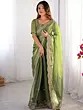 The rich, verdant hue of the silk is a testament to nature's finest palettes, offering a sophisticated canvas for the intricate embellishments. You'll be captivated by the delicate border detailing, a symphony of golden threads and shimmering accents that frame the drape with understated opulence. Subtle floral motifs are scattered across the fabric, catching the light and adding a touch of ethereal beauty.