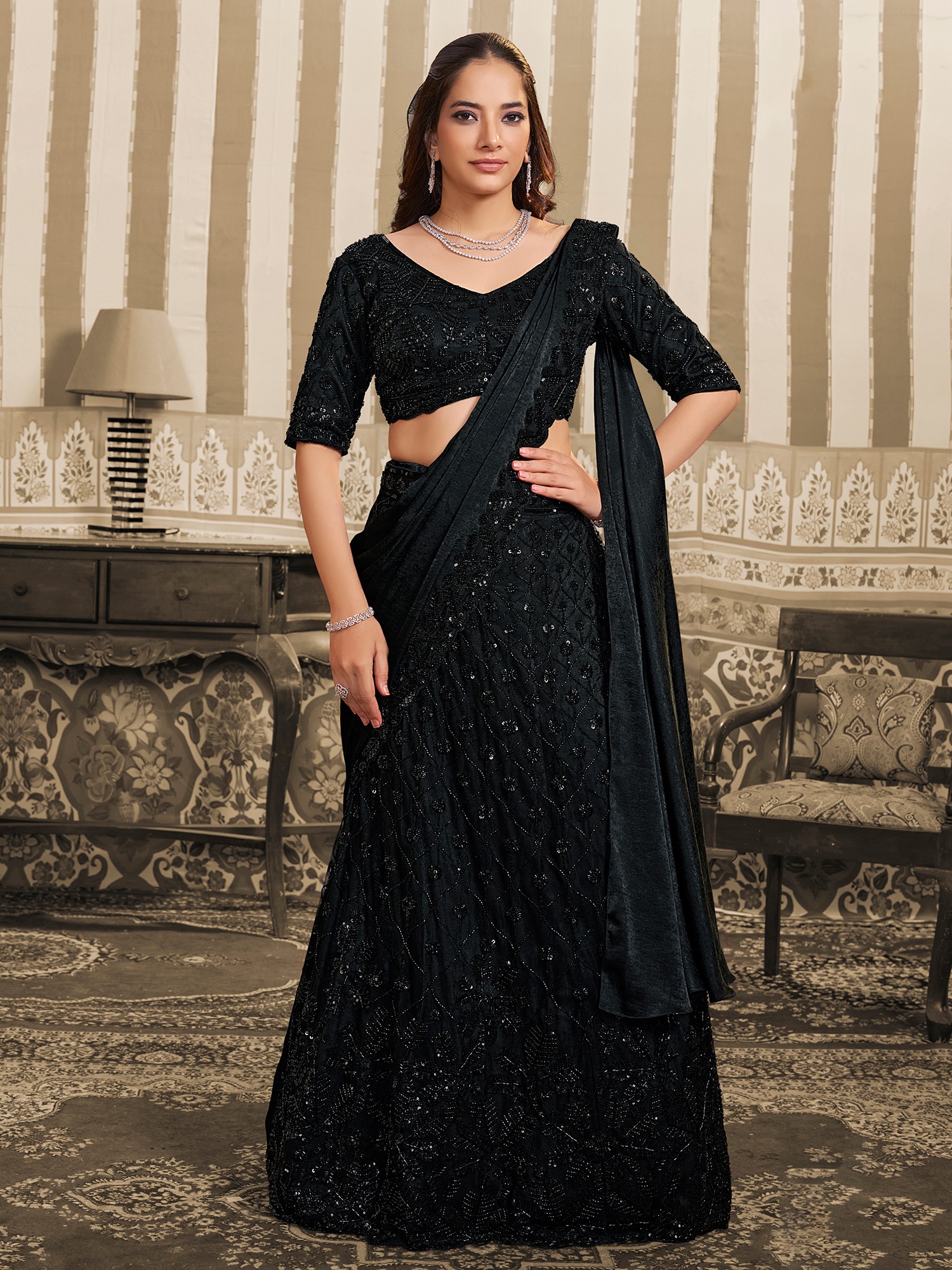 Heavy Embellished Lehenga Choli Made From Velvet Satin With Intricate Triple Sequins And Beads Work For Wedding Wear