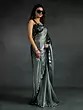 Foil Satin Mononet Saree With Dual Beads Sequins Embellishment Designer Partywear For Wedding Reception
