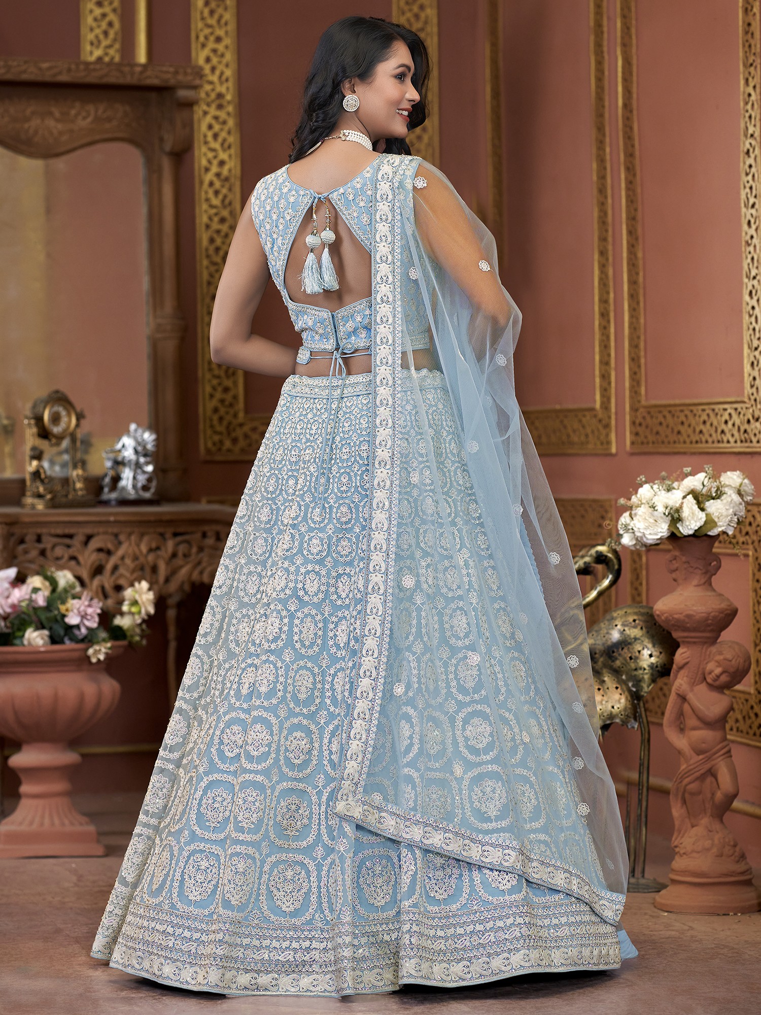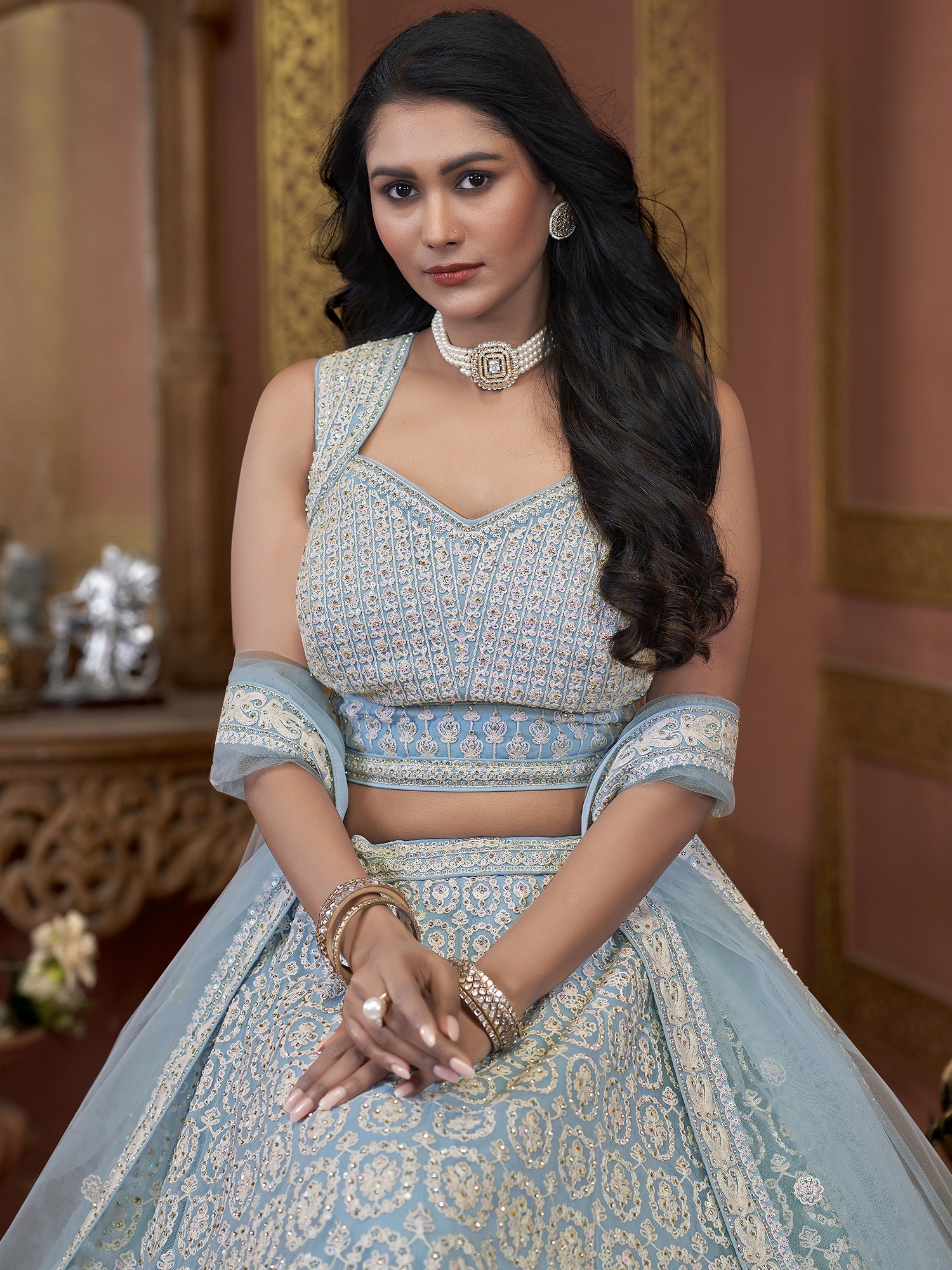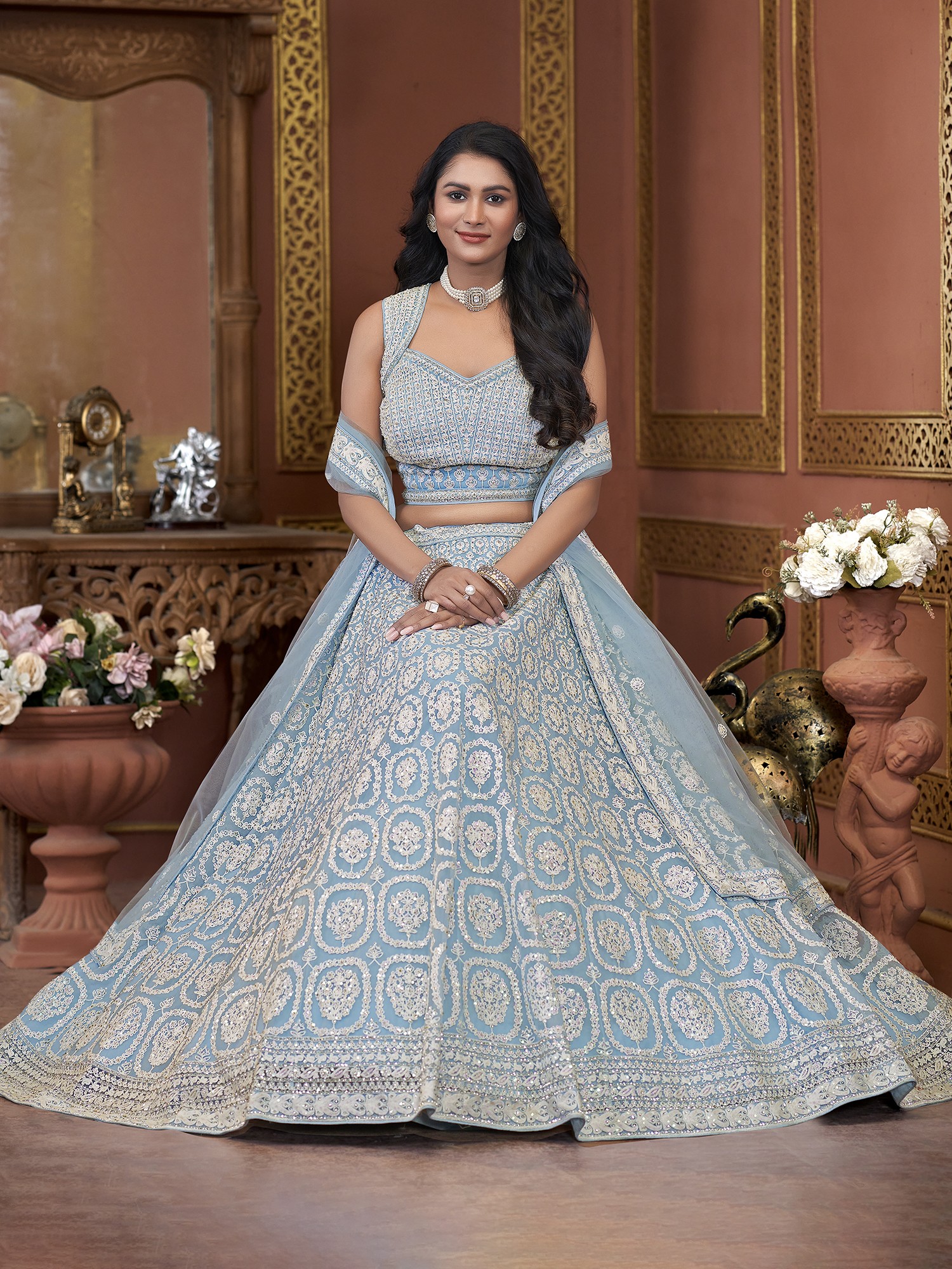 Pure Cosmos Tissue Embroidery And Sequins Work Attractive Lehenga Choli With Premium Net Dupatta