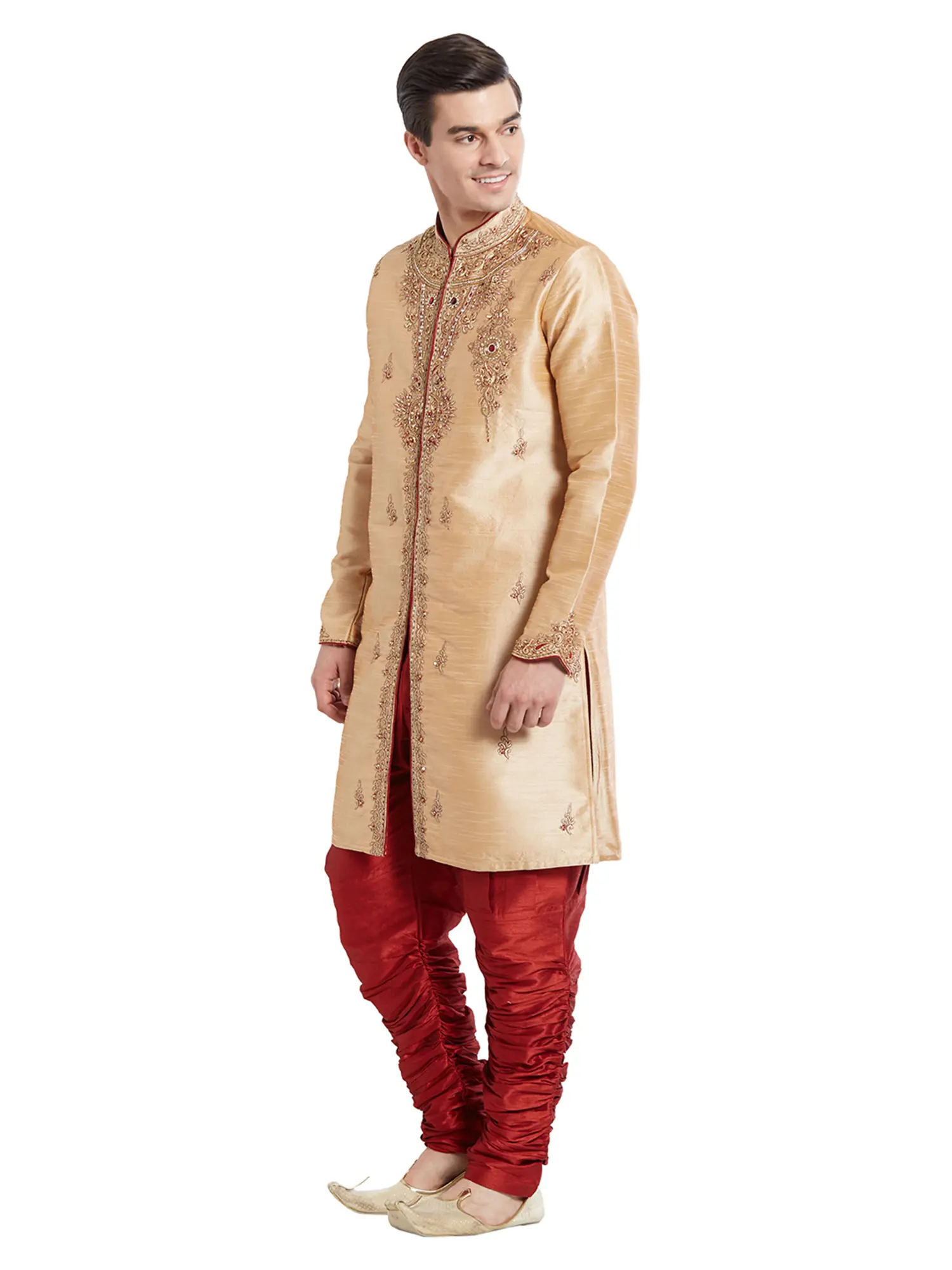 Men's Silk Sherwani with Intricate Embroidery and Handwork for Weddings & Celebrations