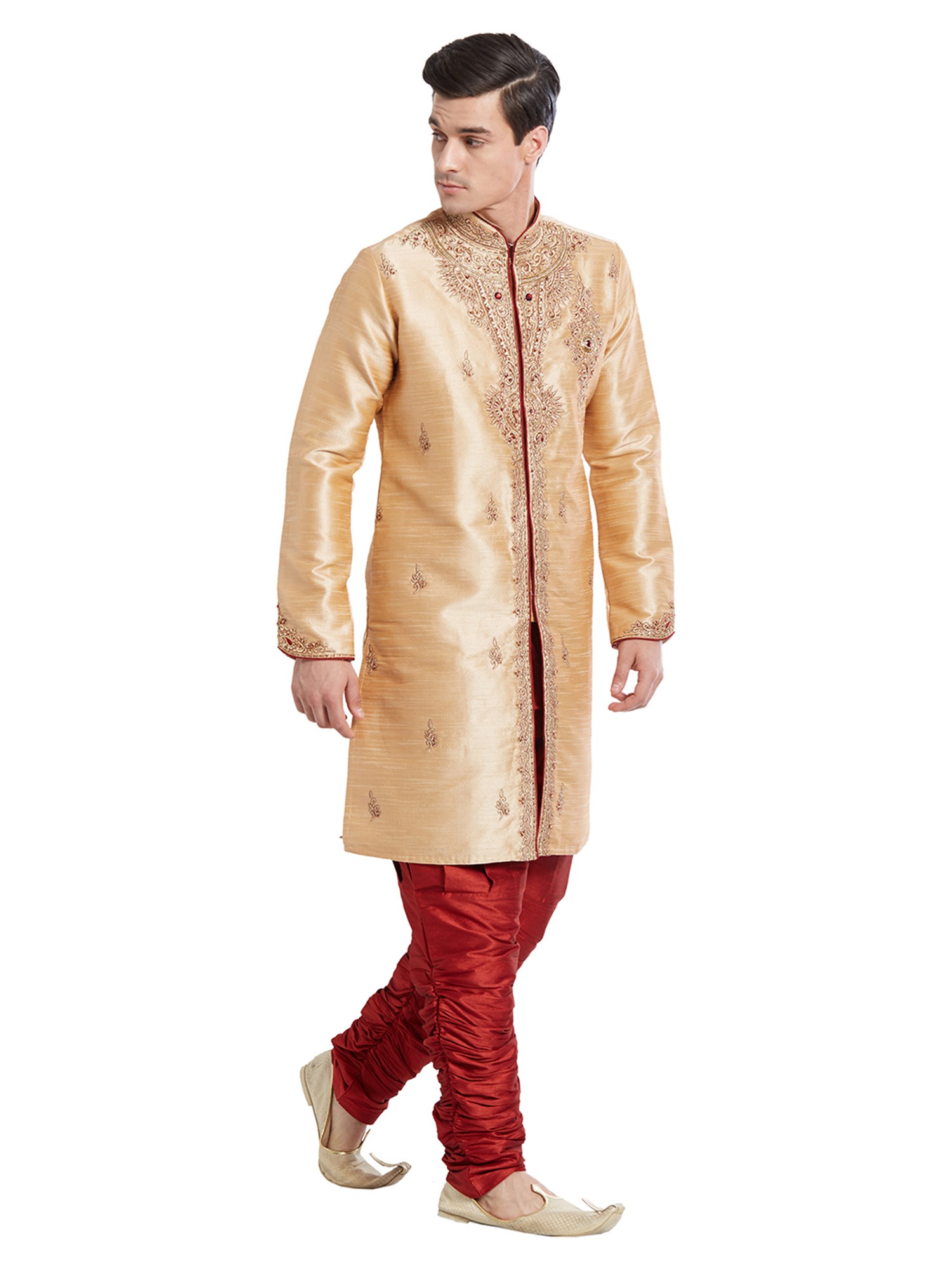 Men's Silk Indo Sherwani: Wedding Wear with Rich Embroidery and Fine Handwork
