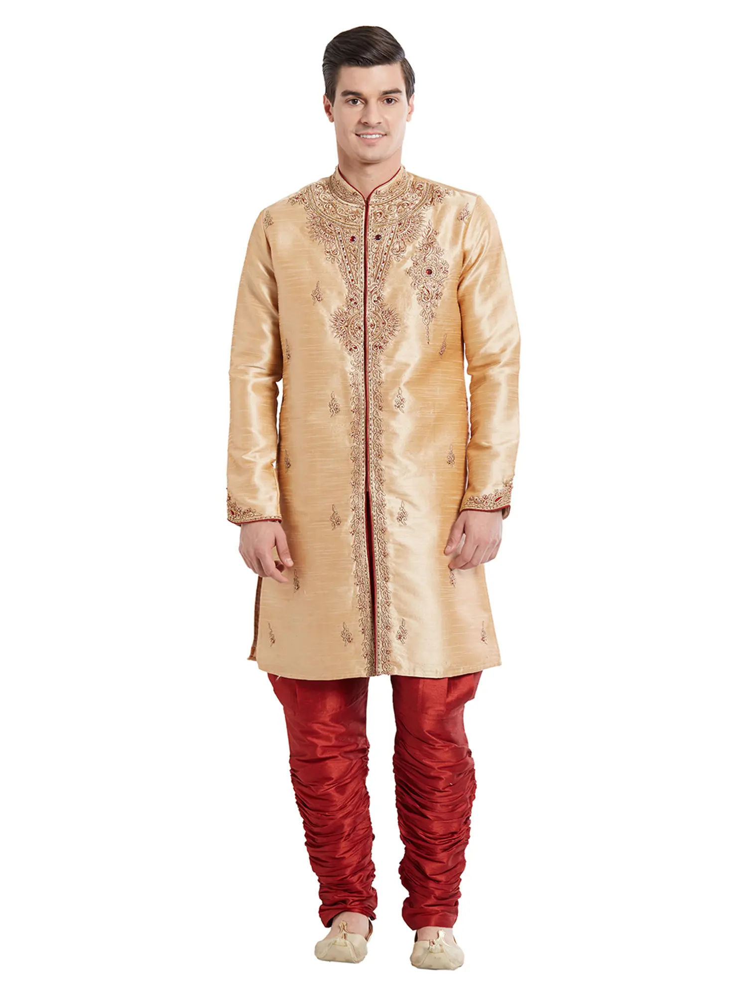 Embroidered Silk Sherwani for Men: Traditional Festive & Wedding Ensemble