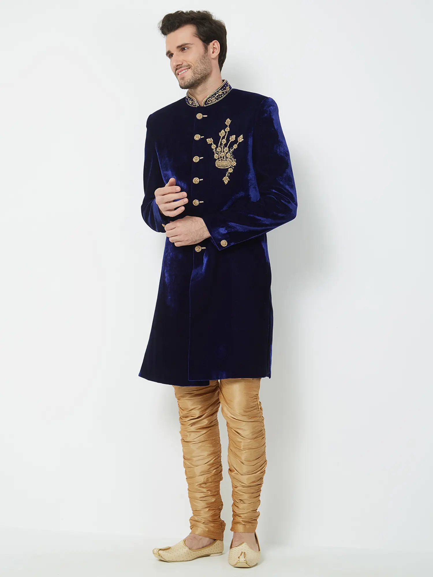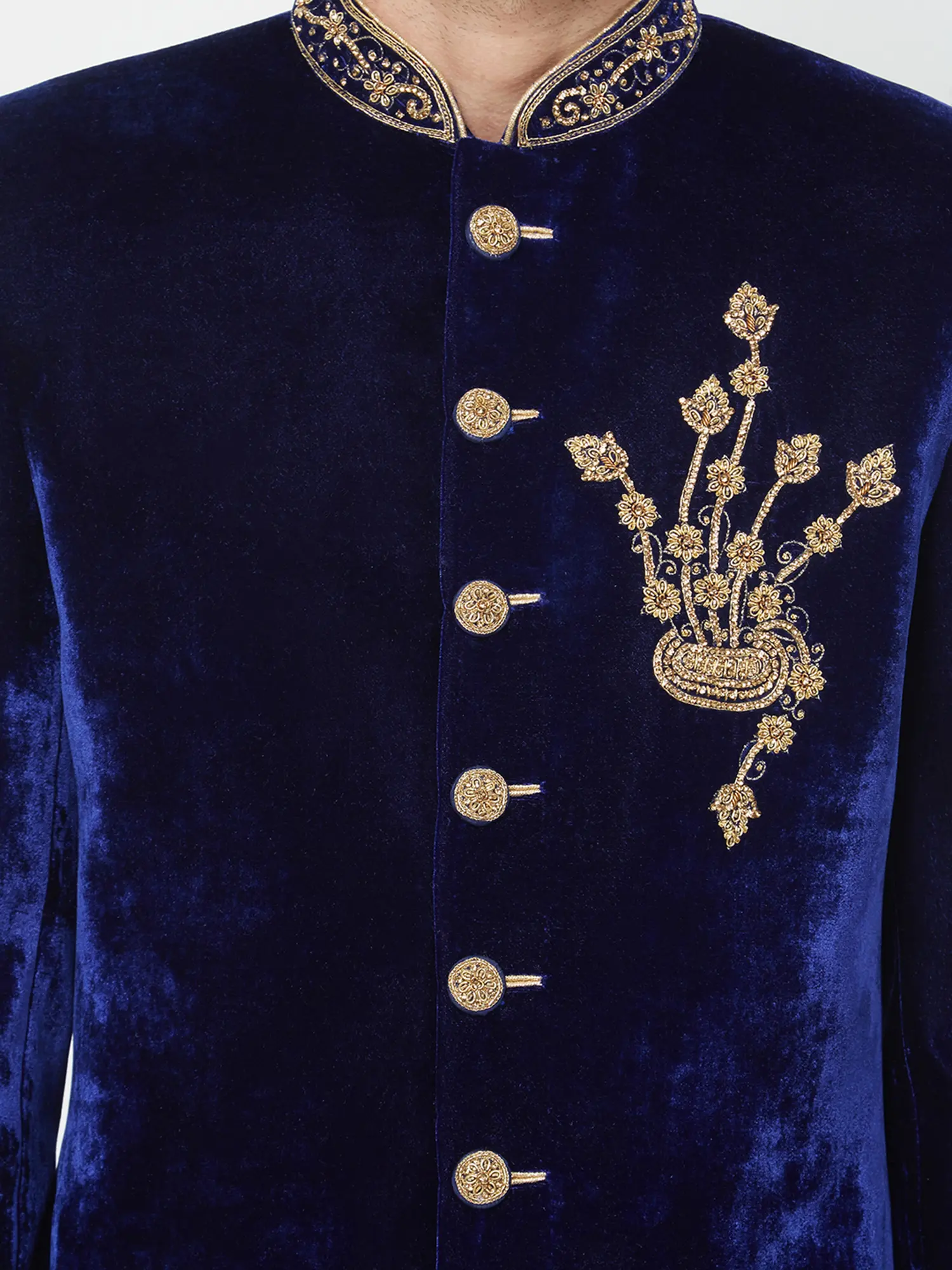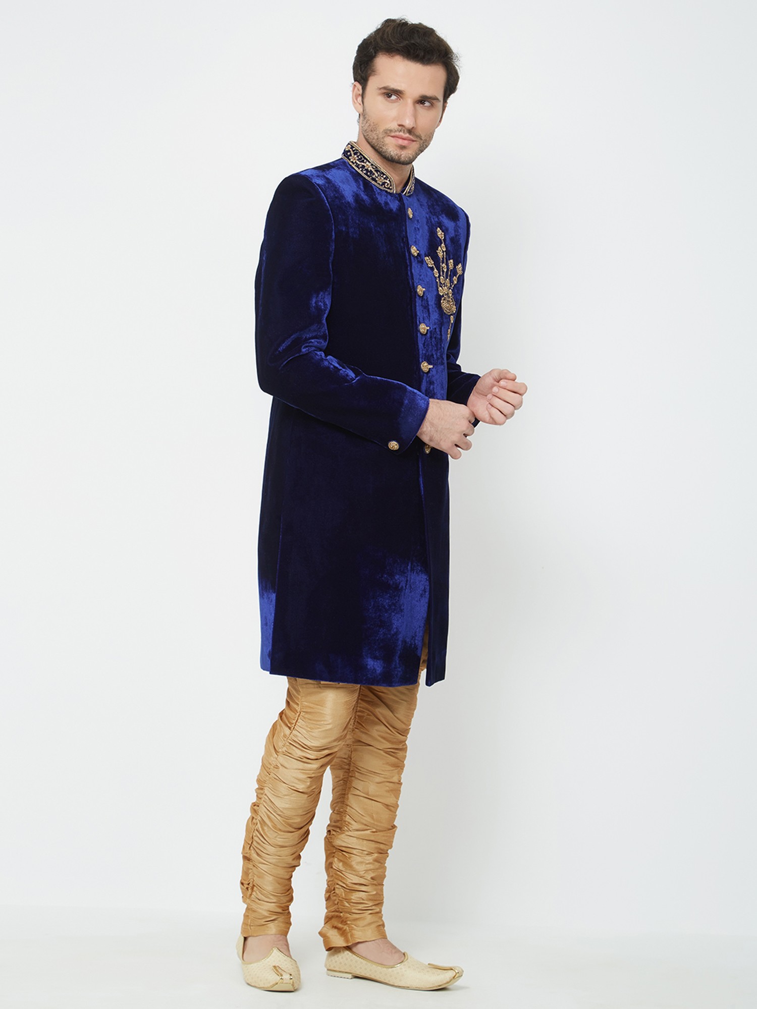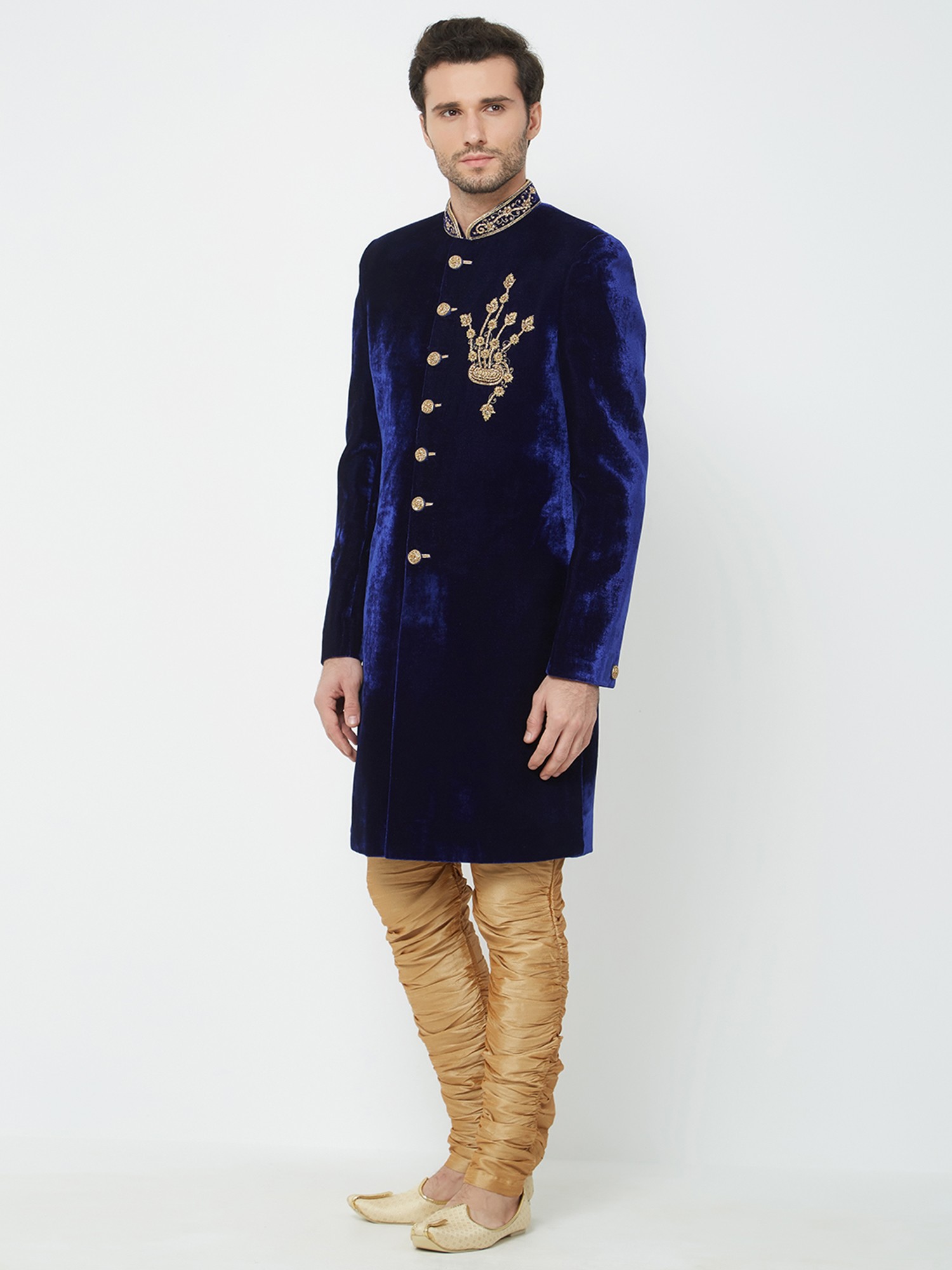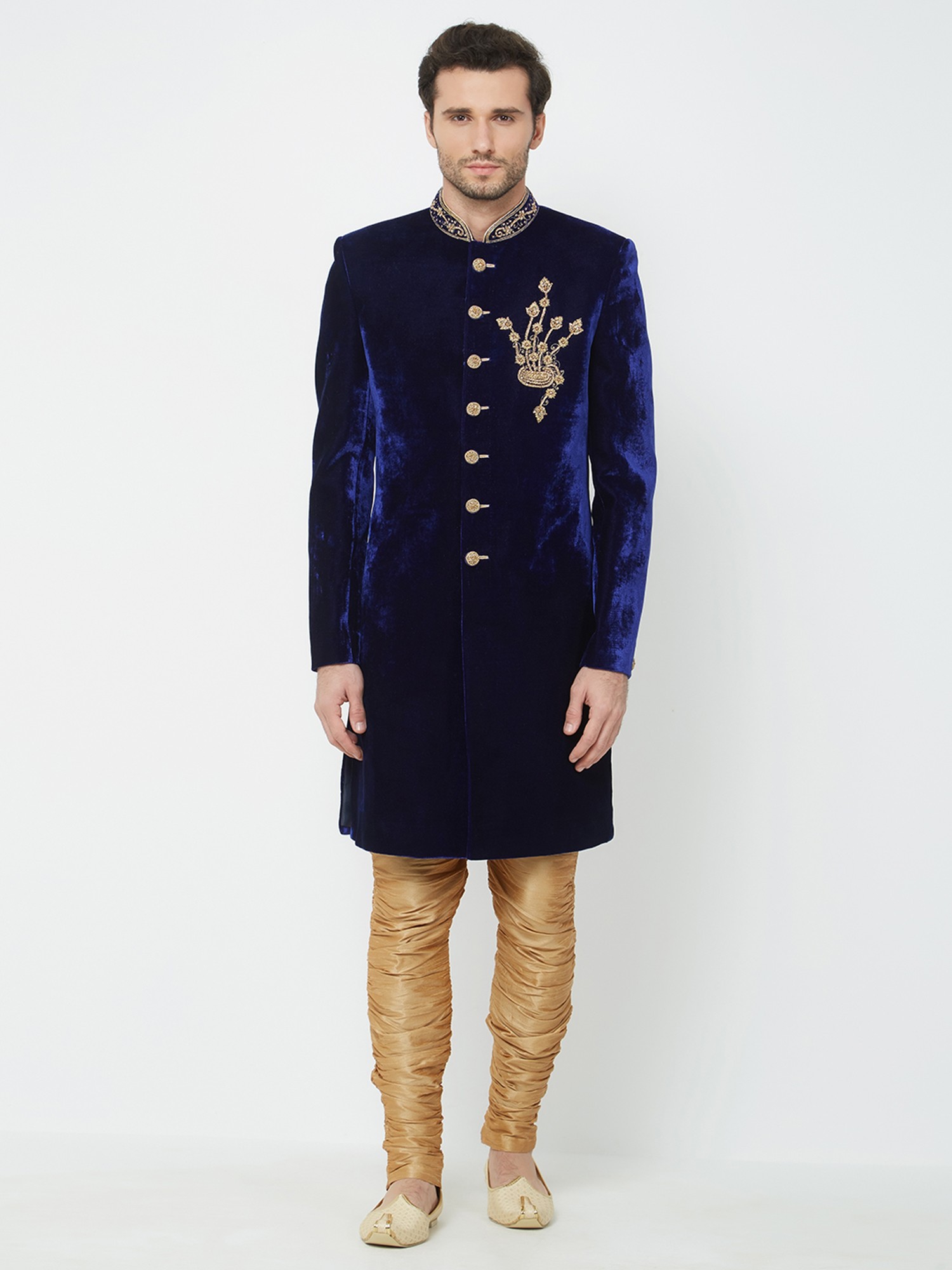 Embroidered Silk Sherwani for Men: Ideal Wedding Groom Attire with Intricate Handwork