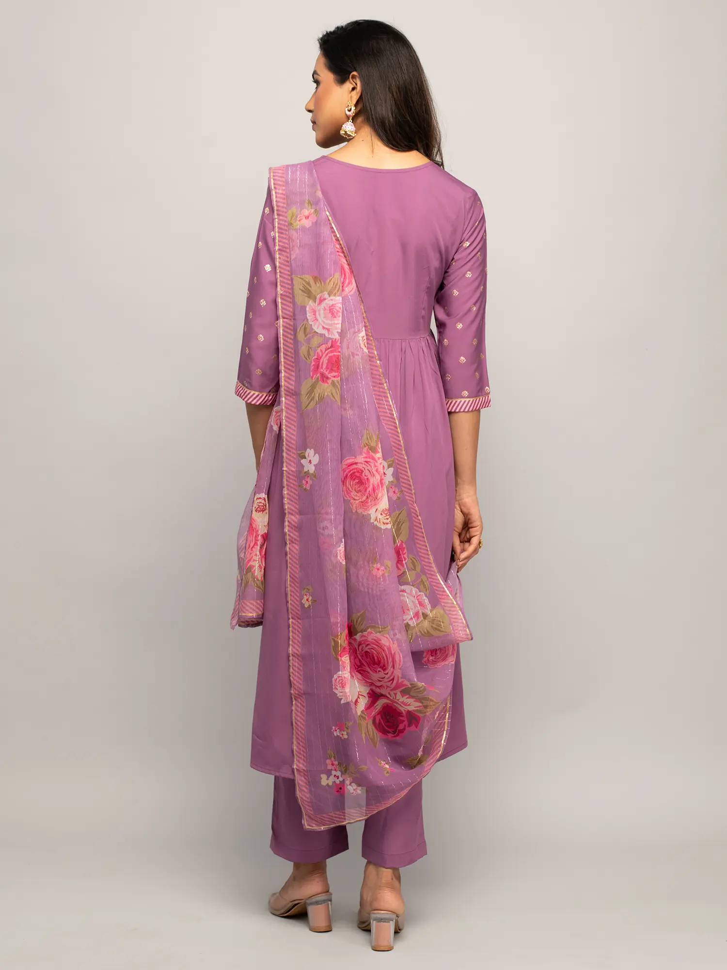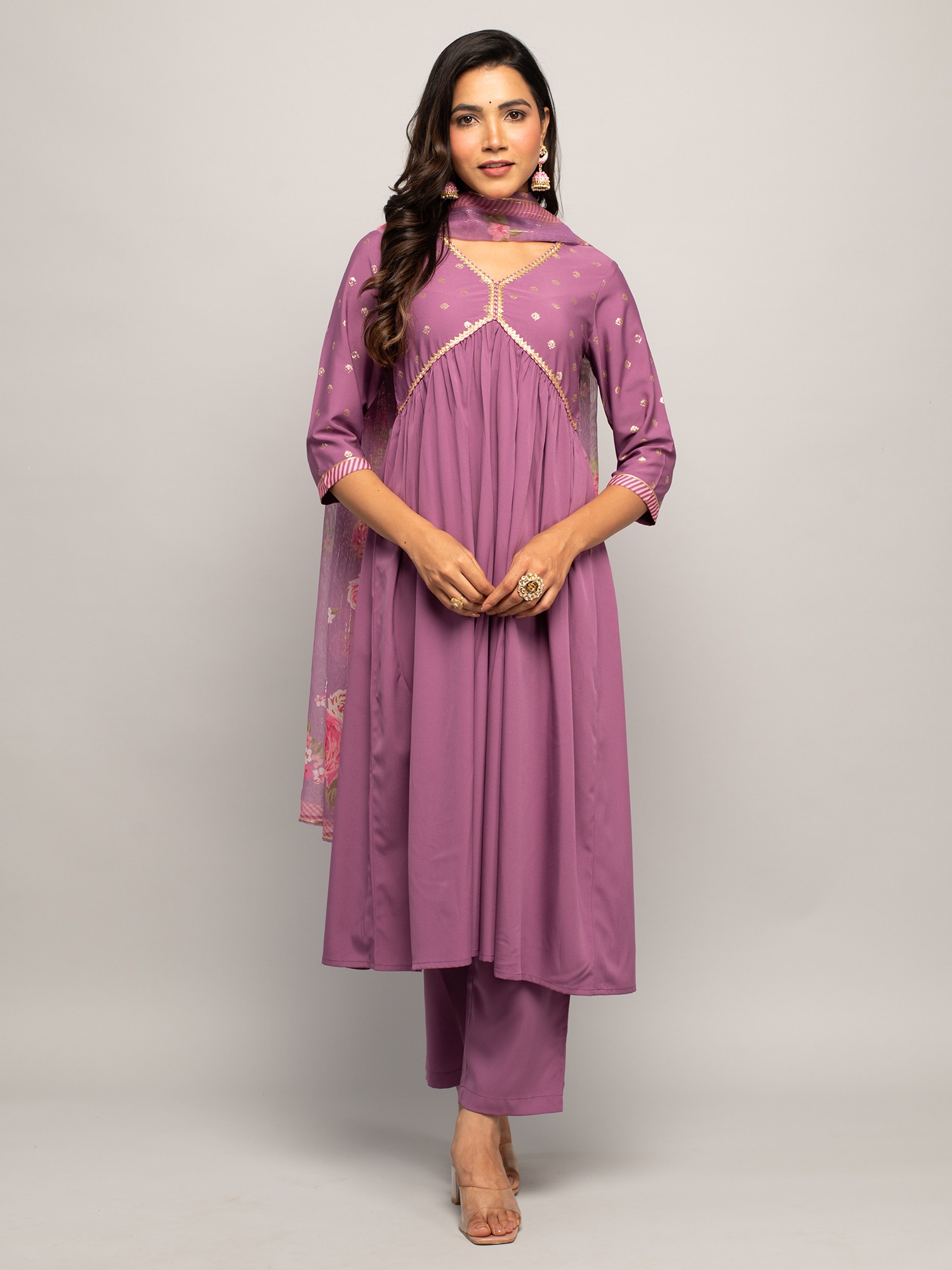 Brown Flared Churidar Salwar Kameez with Embroidered Sequins