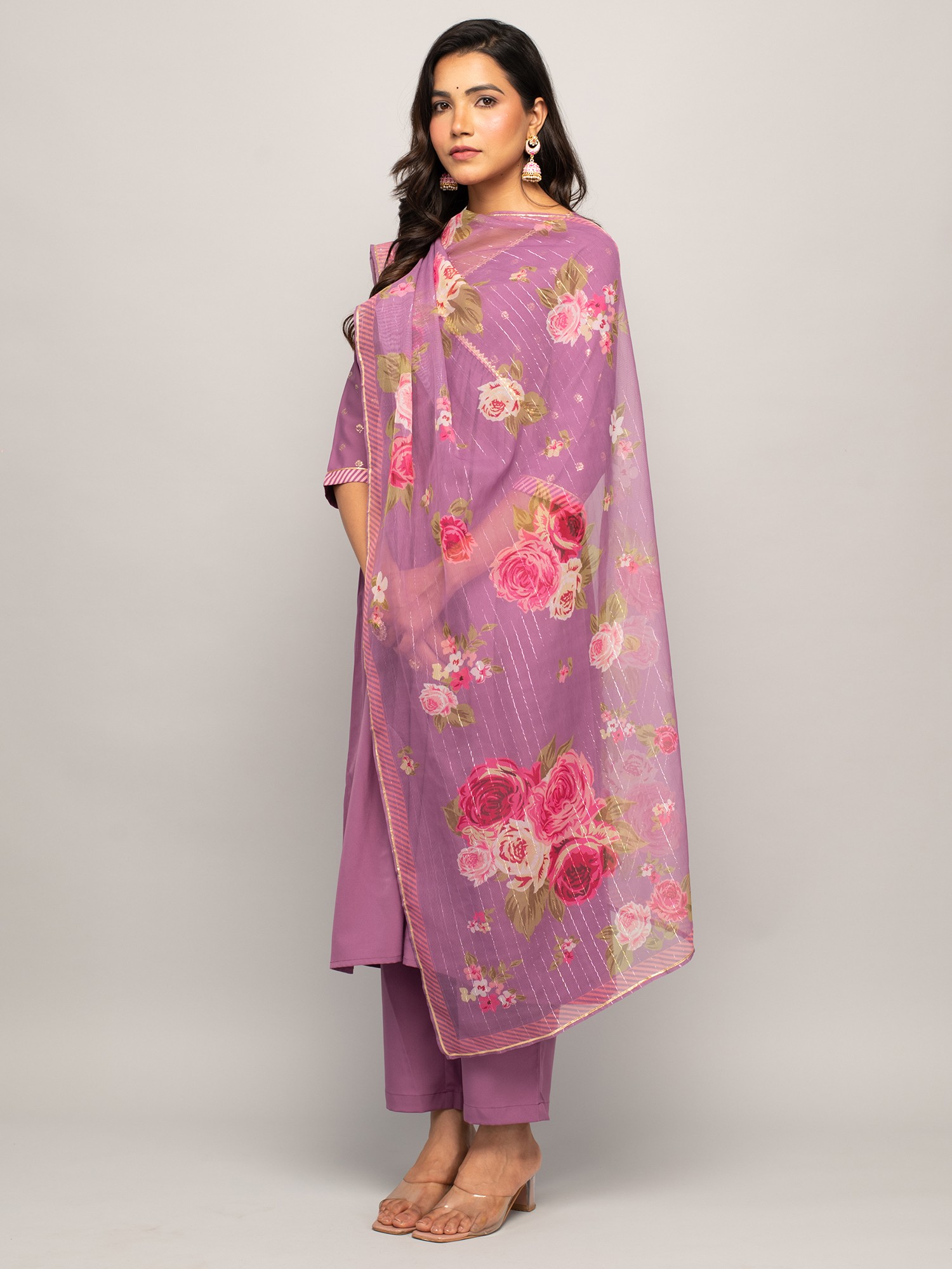 All Over Floral Digital Print Fully Flared Anarkali Pure Muslin Kurti And Bottom With Dupatta
