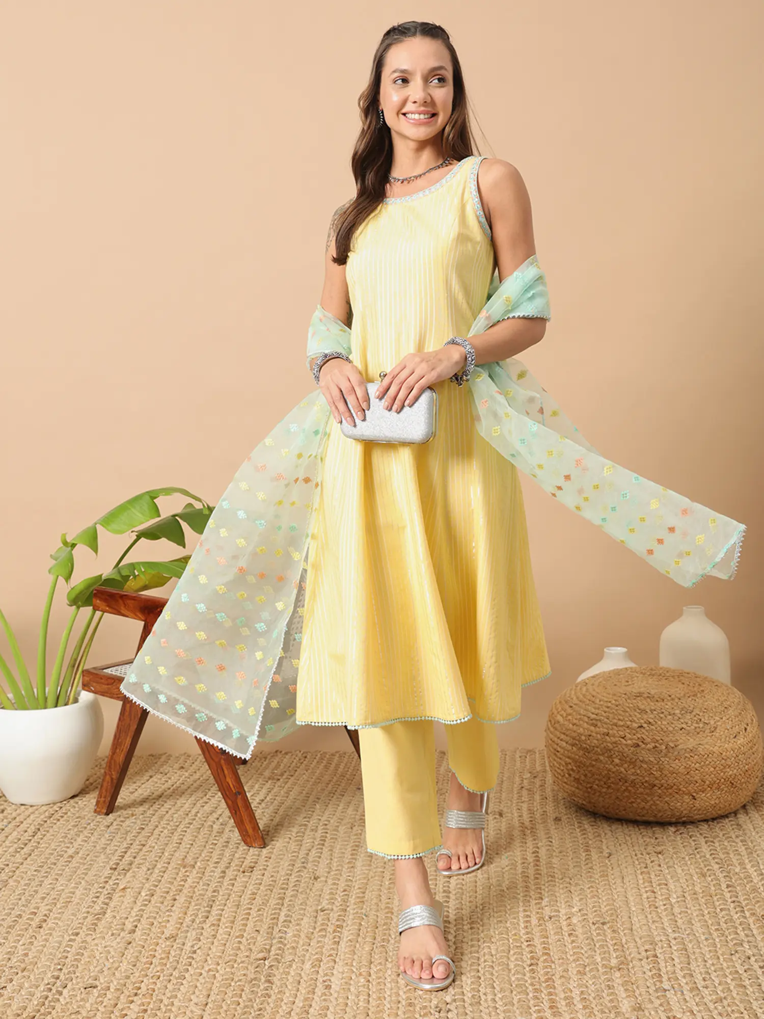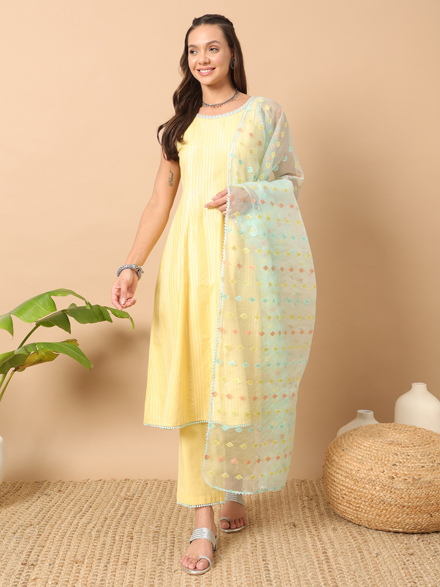 Beryl-Green Organza Embroidery Work Elegant Festive Wear Straight Kurta Set