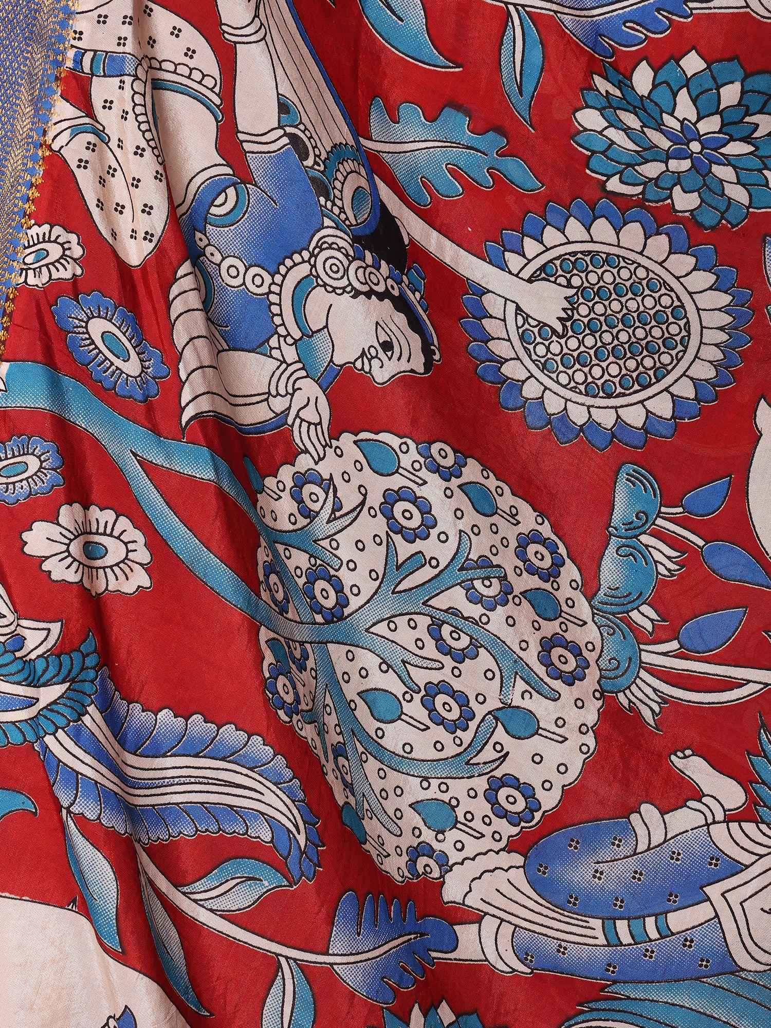 Crafted with traditional Kalamkari artistry, showcasing meticulous hand-drawn motifs.