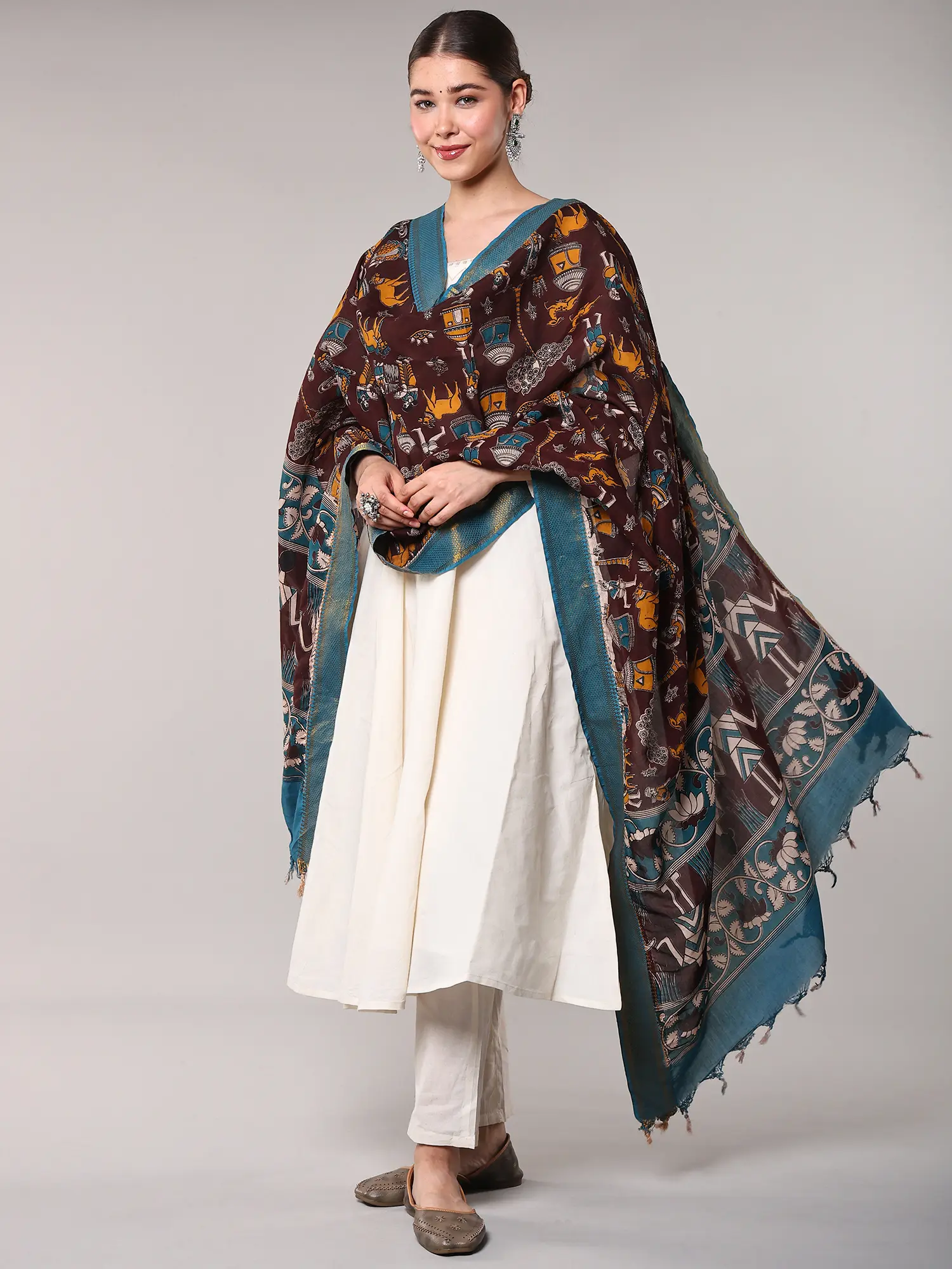 Drape it over a simple kurta for an effortlessly chic daytime look, or pair it with an elegant Anarkali for festive occasions. It serves as a stunning statement piece, perfect for cultural gatherings, elegant dinners, or simply when you wish to infuse your attire with unparalleled character and artistic flair. You'll find its versatility as captivating as its design.