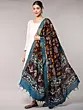 Black-Ink Floral Printed Kalamkari Dupatta from Telangana with Zari Woven Border and Dancing Apsaras