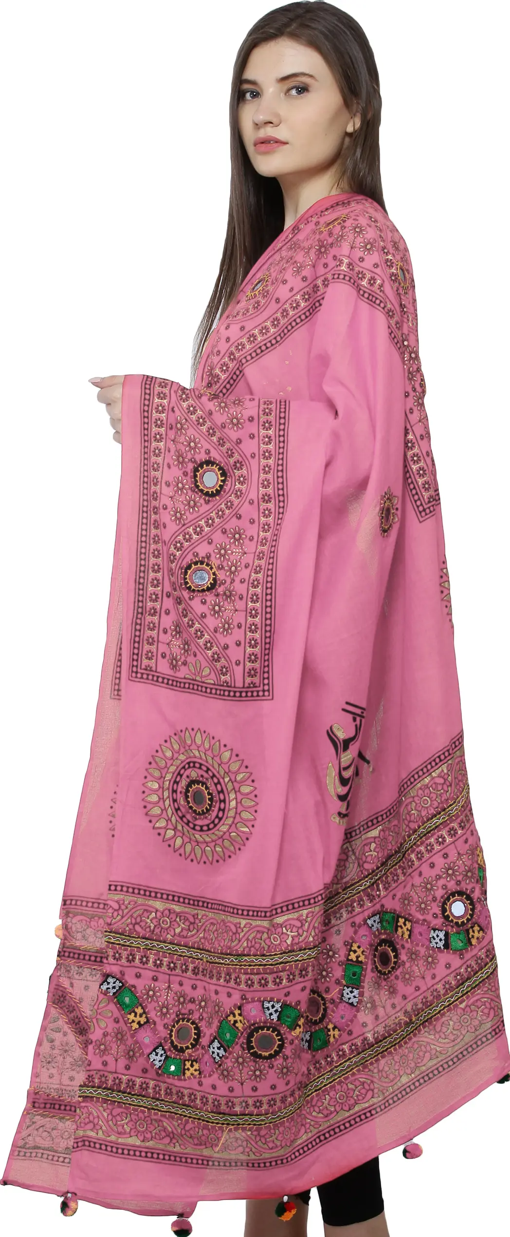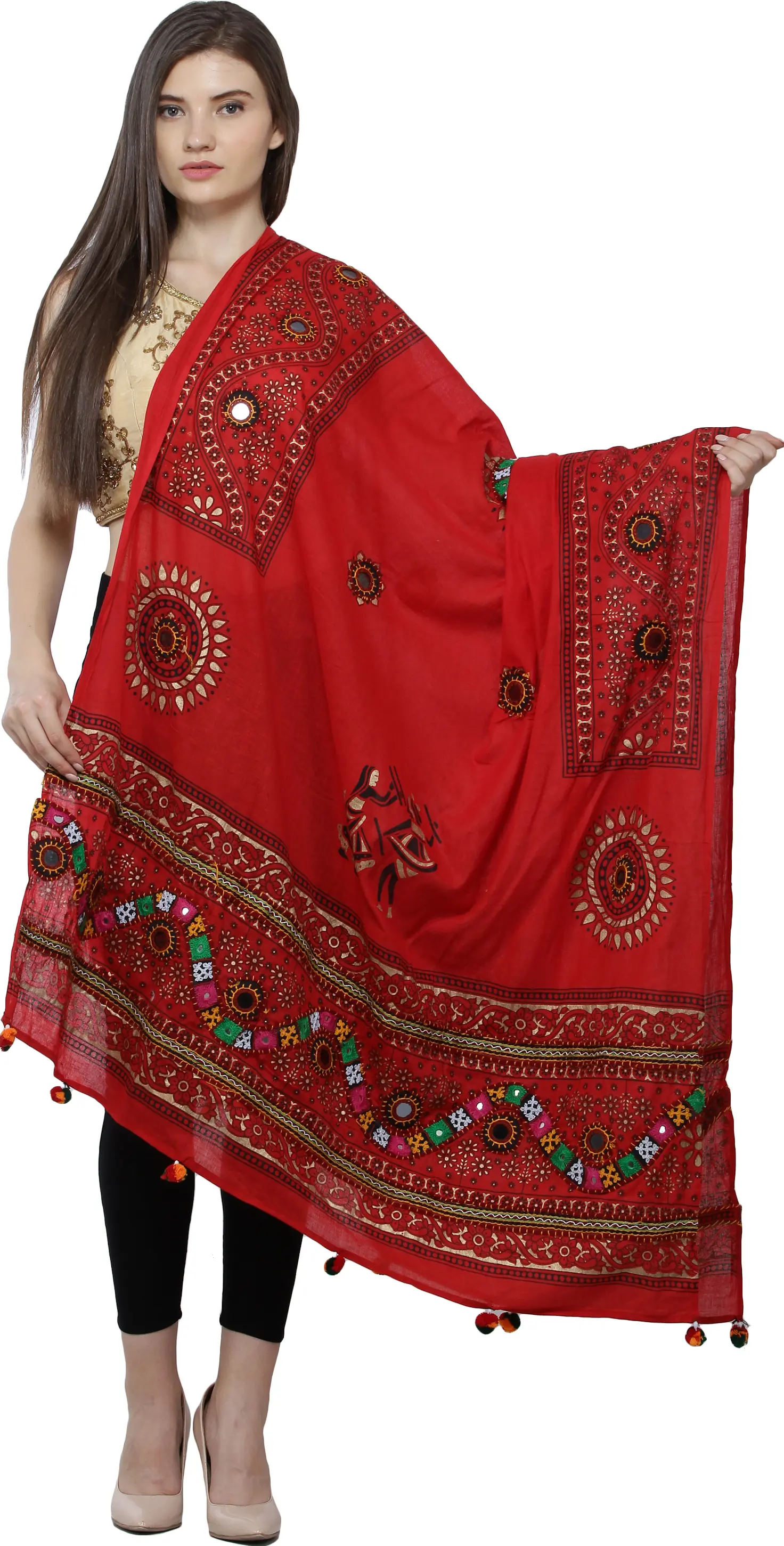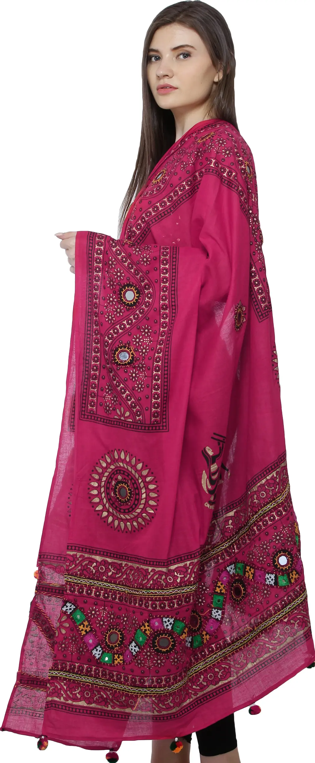 Immerse yourself in the vibrant artistry of Gujarat with this exquisite dupatta, a testament to the rich textile heritage of Kutch. This piece is more than just an accessory; it's a wearable work of art, meticulously crafted to bring a touch of ethnic charm and sophisticated elegance to your wardrobe. The pure cotton fabric provides a soft, breathable feel, ensuring comfort throughout the day, while the generous dimensions offer versatile styling options. Drape it gracefully over your shoulders, tie it as a chic scarf, or let it flow as a stunning addition to your ethnic ensemble.