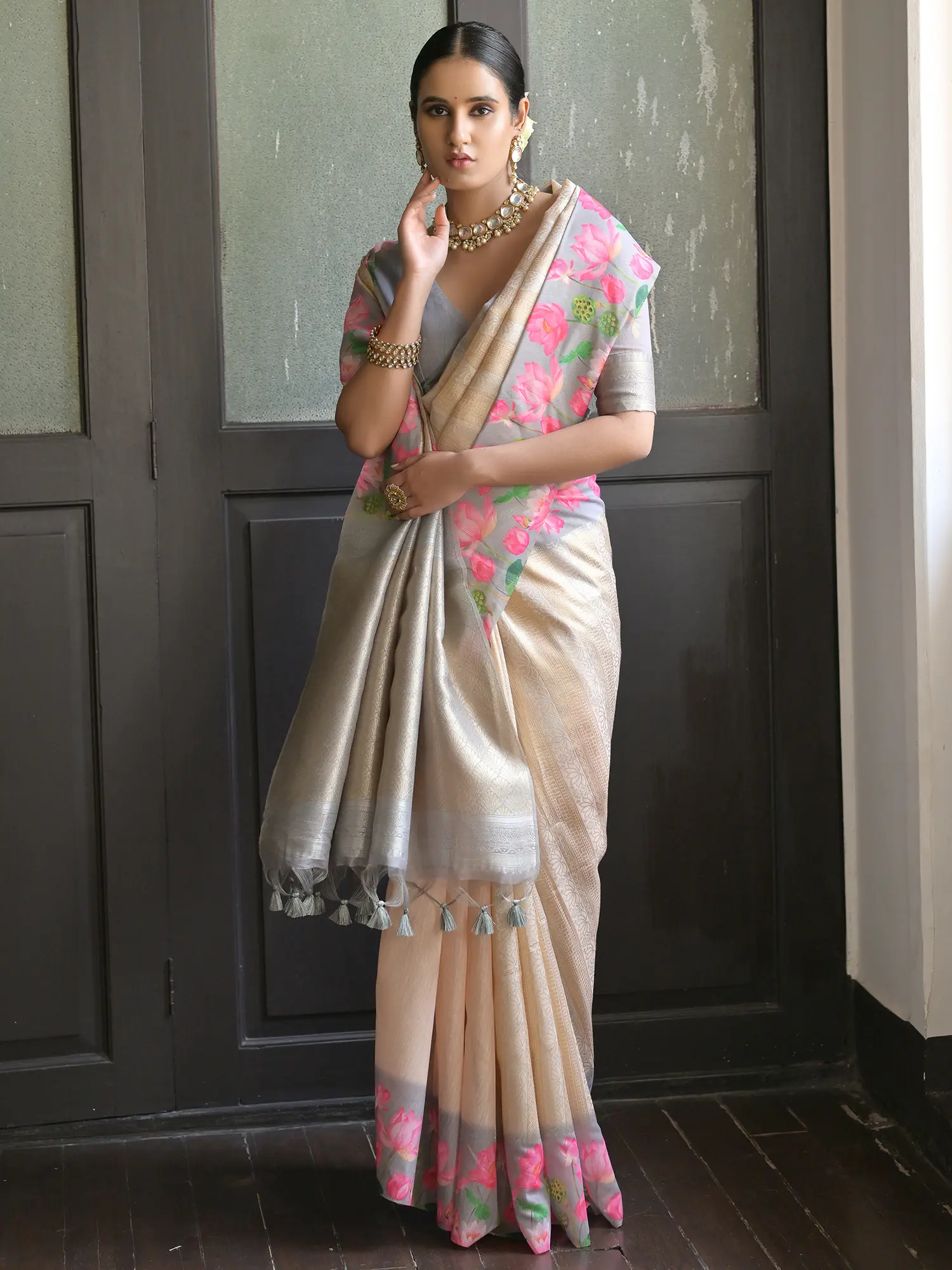 Aurora-Red Dola Silk Saree with Printed Bootis and Zari Woven Floral Vine Border