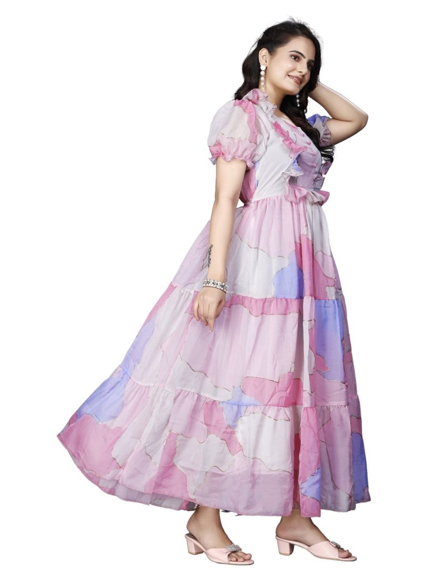 Printed Georgette Flared Long Gown Party Wear Anarkali Style Ethnic Maxi Dress For Women Festive Casual Wear