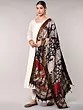 White-Pepper Flower Vine Printed Kalamkari Dupatta from Telangana with Zari Border