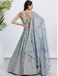 Bottle-Green Net Beads and Golden Thread Embroidery Lehenga Choli with Cutwork Dupatta