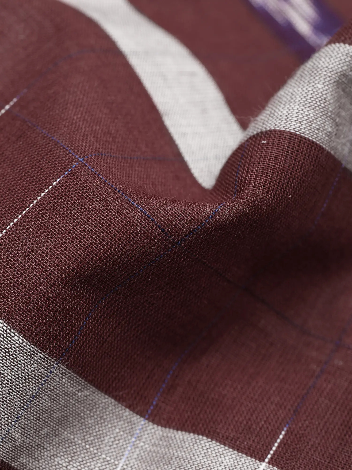 Pure Cotton Angavastram Shawl with Ikat Graph Checks in Maroon