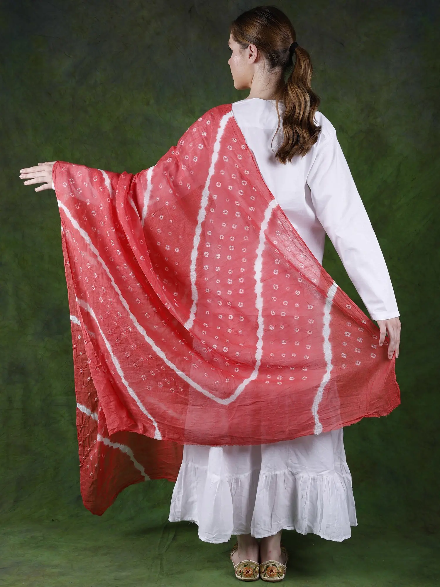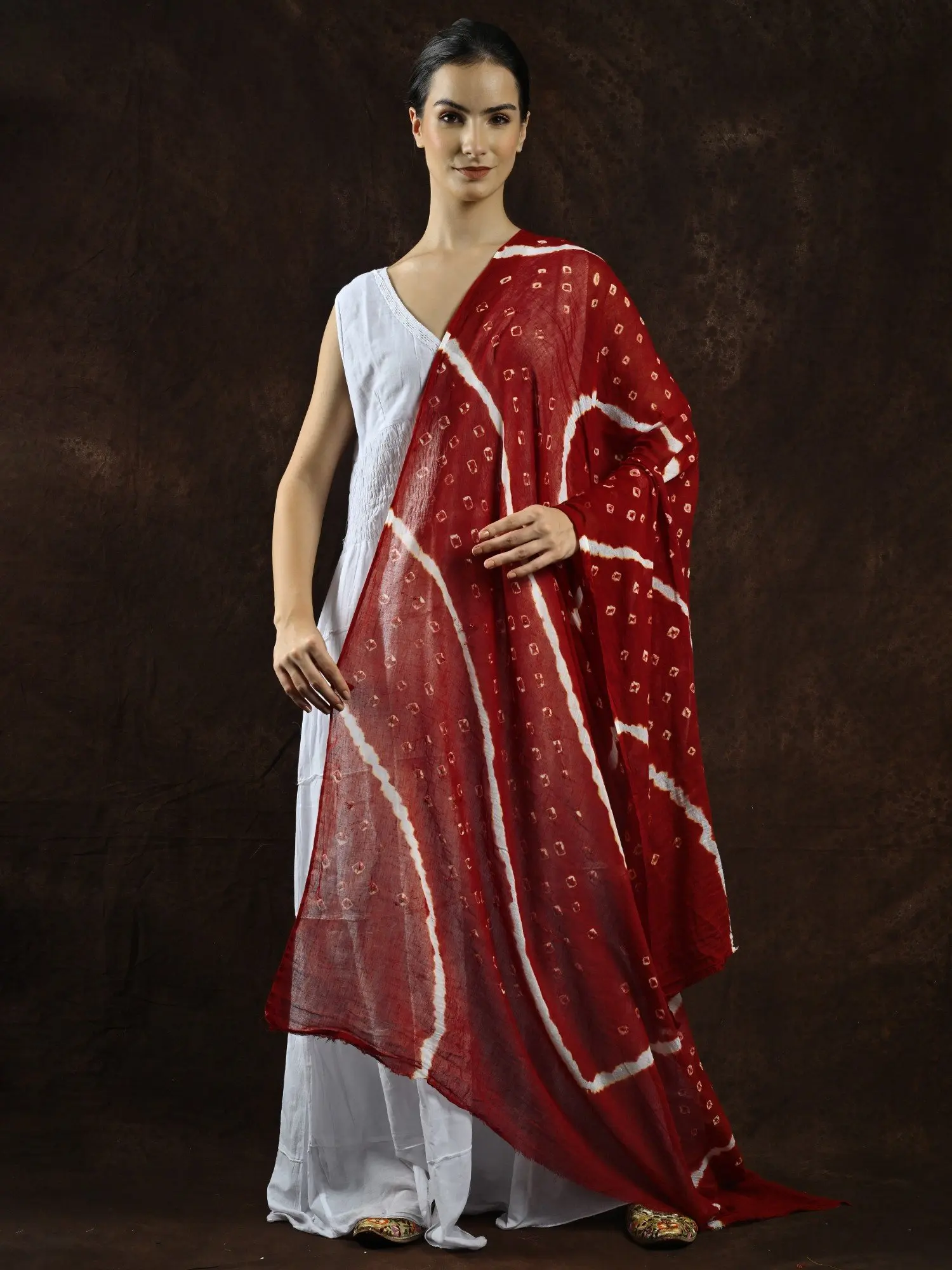 Bandhani Tie-Dye Gharchola Dupatta with Sequins-Zari Embroidery and Scalloped Border