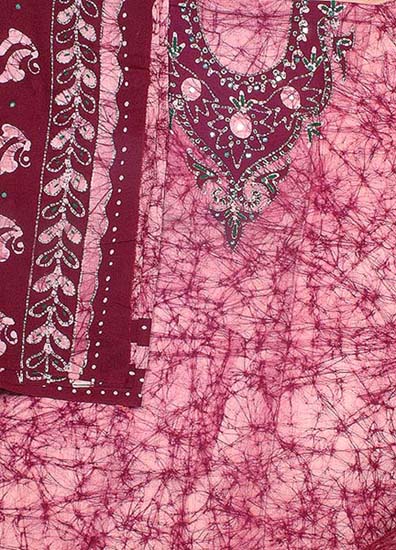Magenta-Purple Batik Salwar Kameez Fabric from Bengal with Kantha Hand-Embroidery