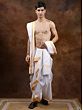 Snow-White Cotton Dhoti and Veshti Ready To Wear Set with Rich Broad Zari Woven Border