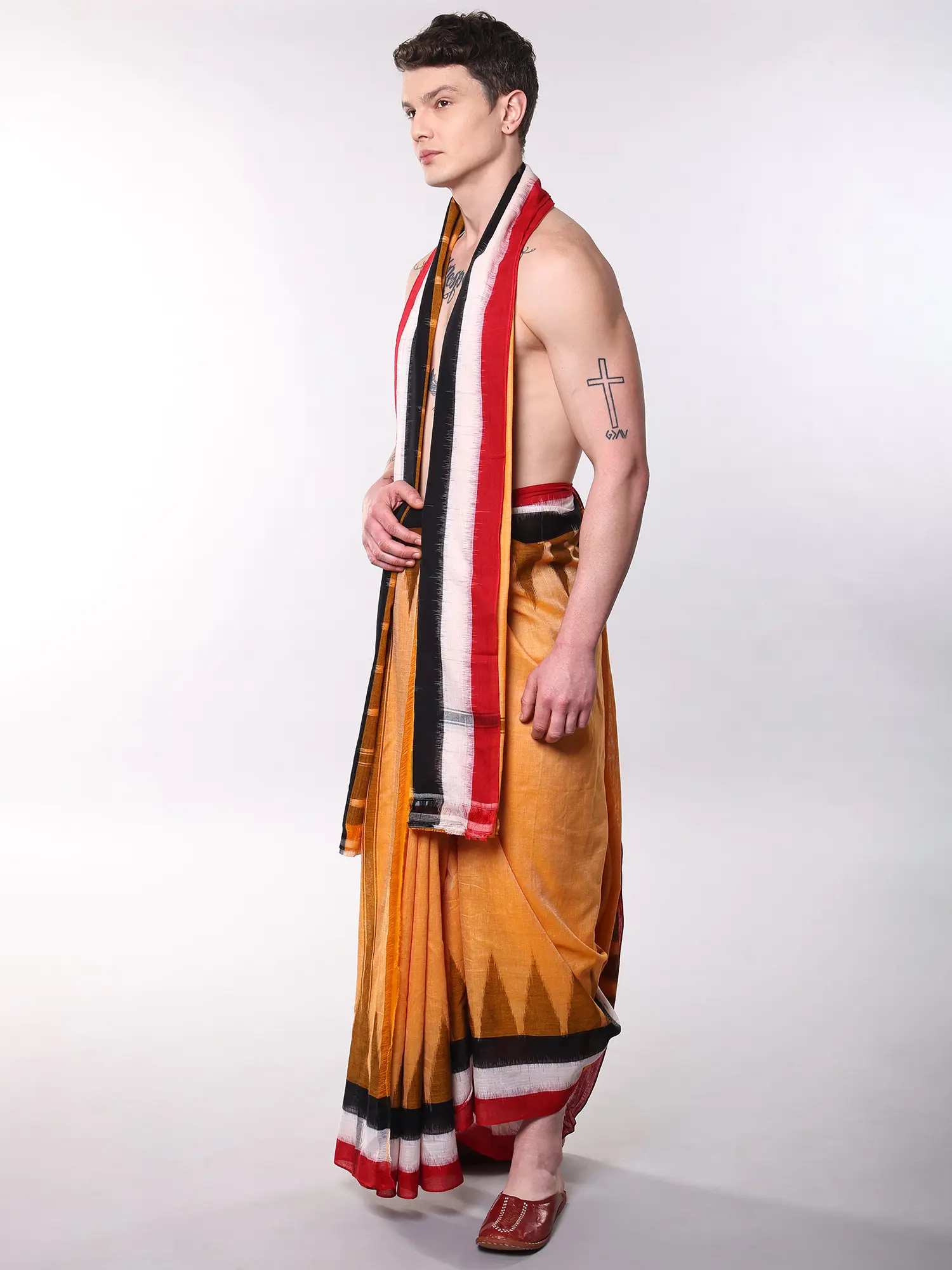 Perfect for religious ceremonies, cultural festivals, or any occasion where you wish to exude an aura of refined elegance and respect. You'll appreciate its comfortable drape during auspicious gatherings, family events, or moments of quiet contemplation. It transforms simple rituals into experiences of profound beauty and cultural connection.