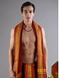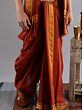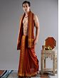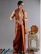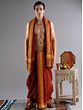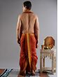 The rust-orange color associated with the flaming color of fire is used for dyeing traditional clothes and increasing their holiness. This pure cotton drape dhoti in rust orange color is a temple attire worn during auspicious ceremonies. Crafted with pure cotton, it features a sophisticated brick pattern woven border, adding an elegant touch to the traditional attire. The vivid color of the dhoti, along with the regal border, makes it an ideal choice for men who wish to participate in religious events.