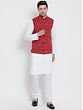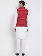 Tibetan-Red Three-Piece Wedding Kurta Pajama Set with Vest
