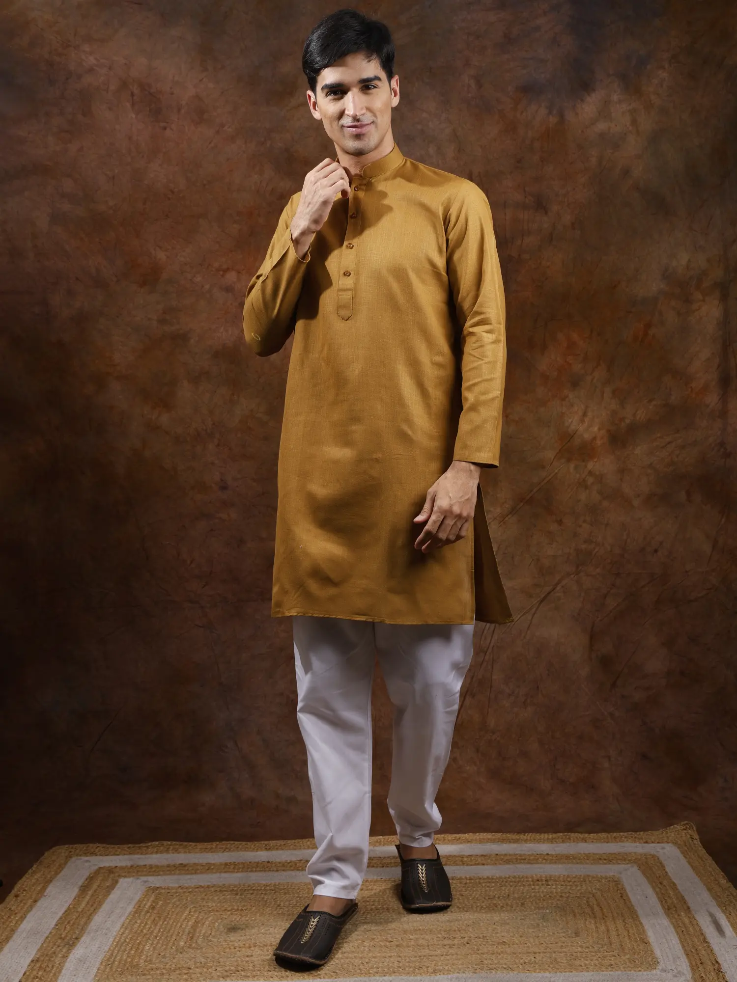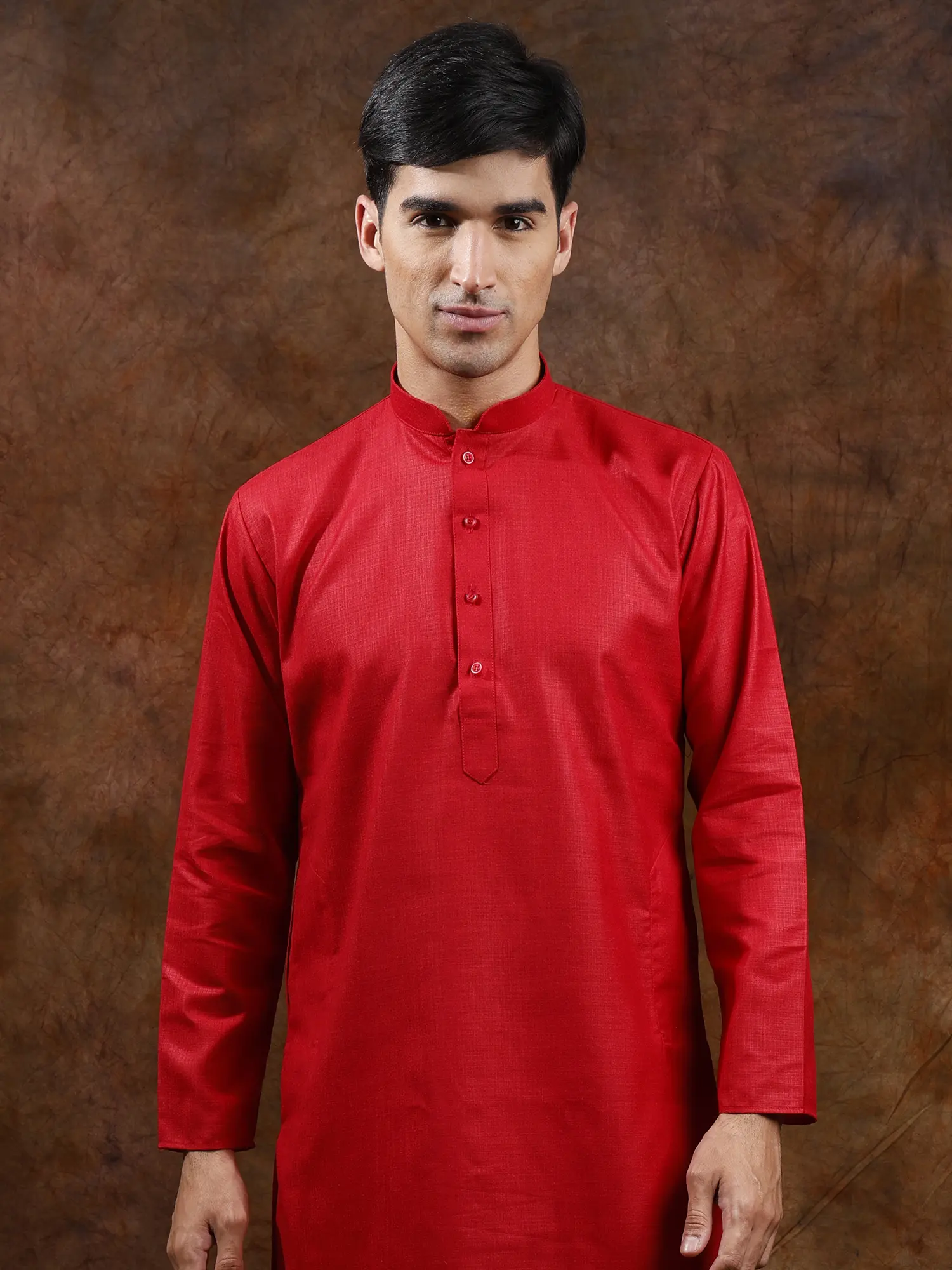 The kurta features a clean, plain design with a refined band collar and a series of button fastenings down the placket, offering a subtle yet distinctive detail. The full-length sleeves add to its polished appearance, while the overall cut ensures a comfortable and relaxed fit. This piece is designed with the modern individual in mind, prioritizing both aesthetic appeal and practical wearability.