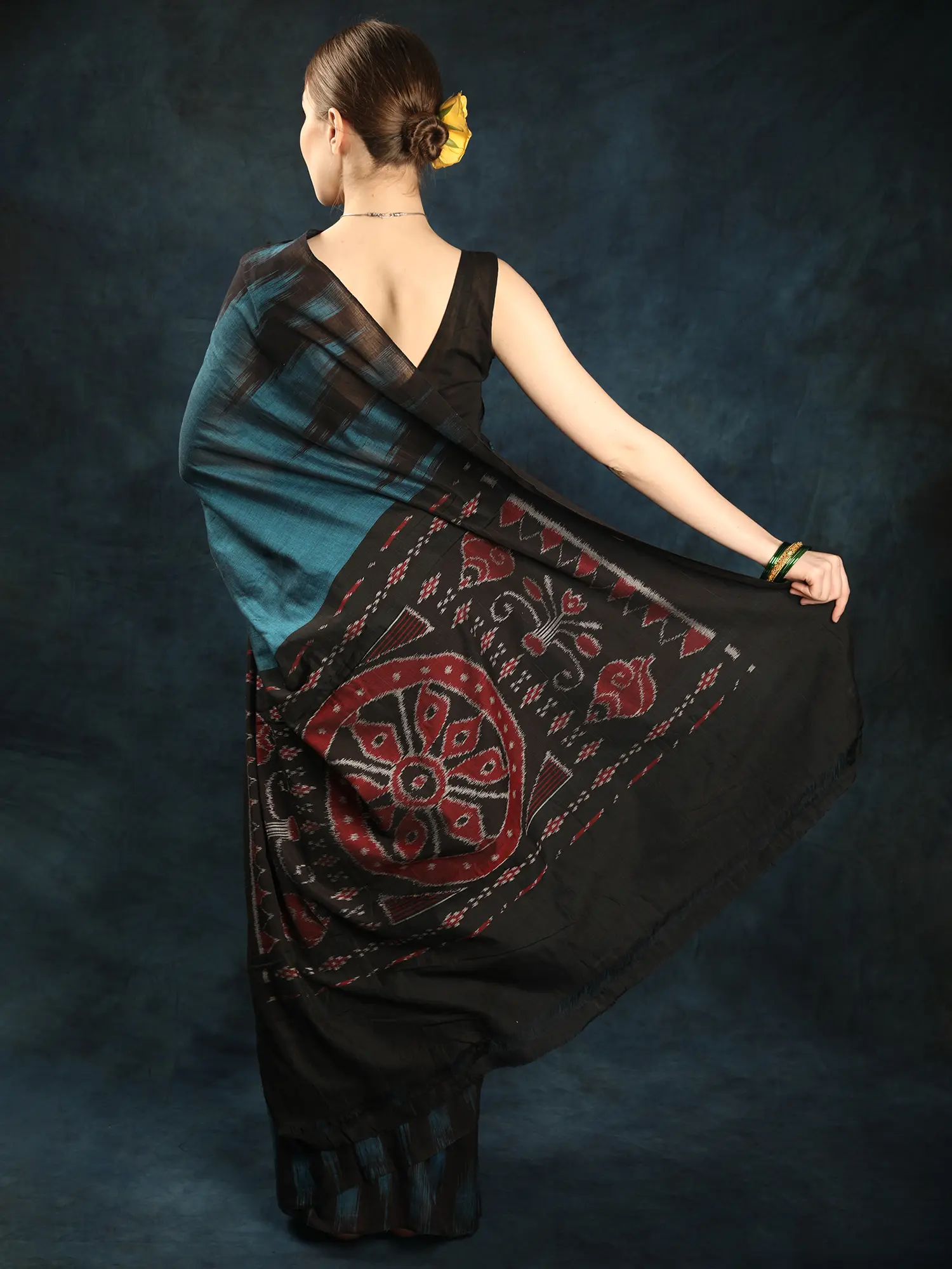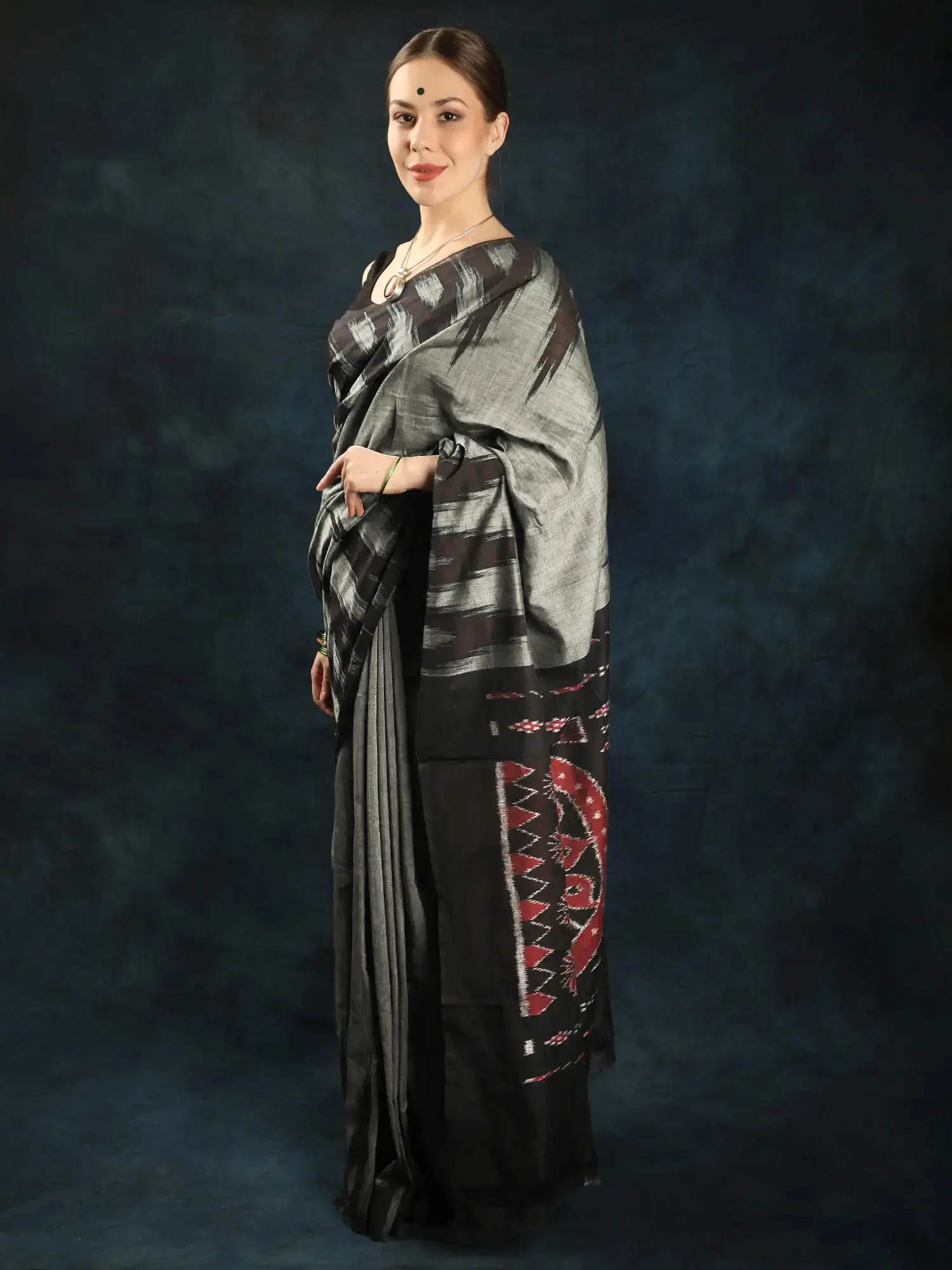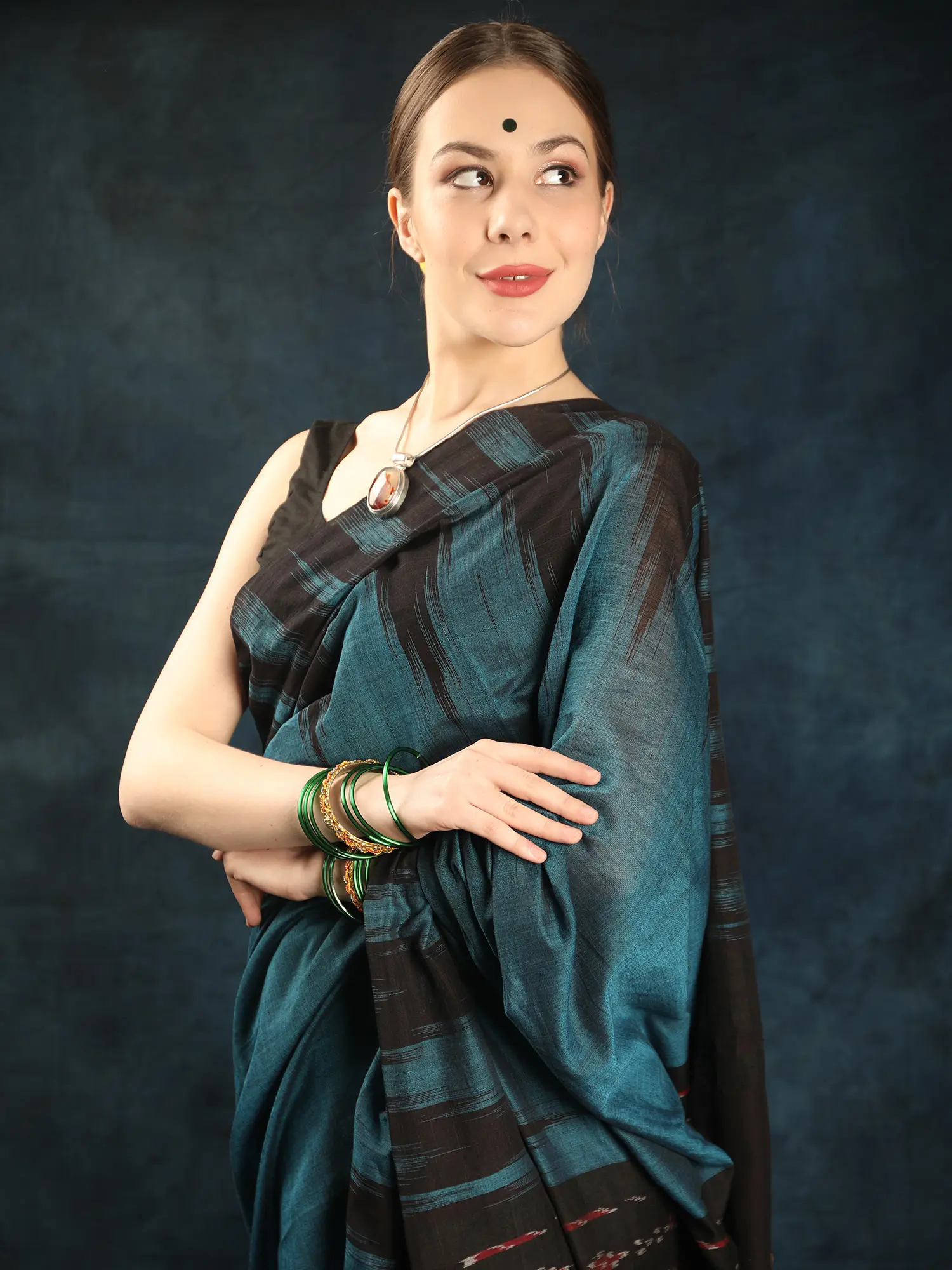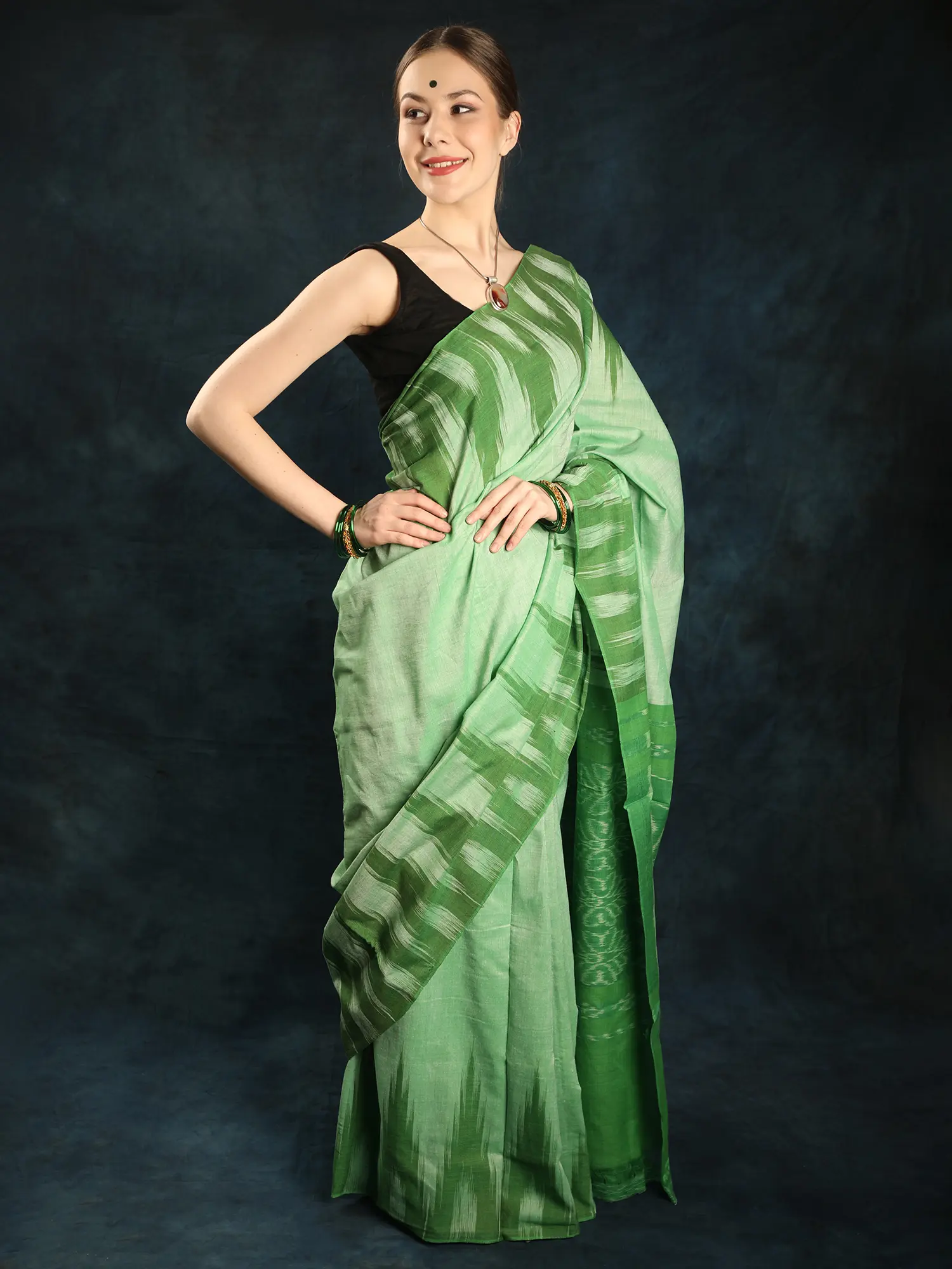 Cedar-Green Sambalpuri Stole from Odisha with Ikat Weave