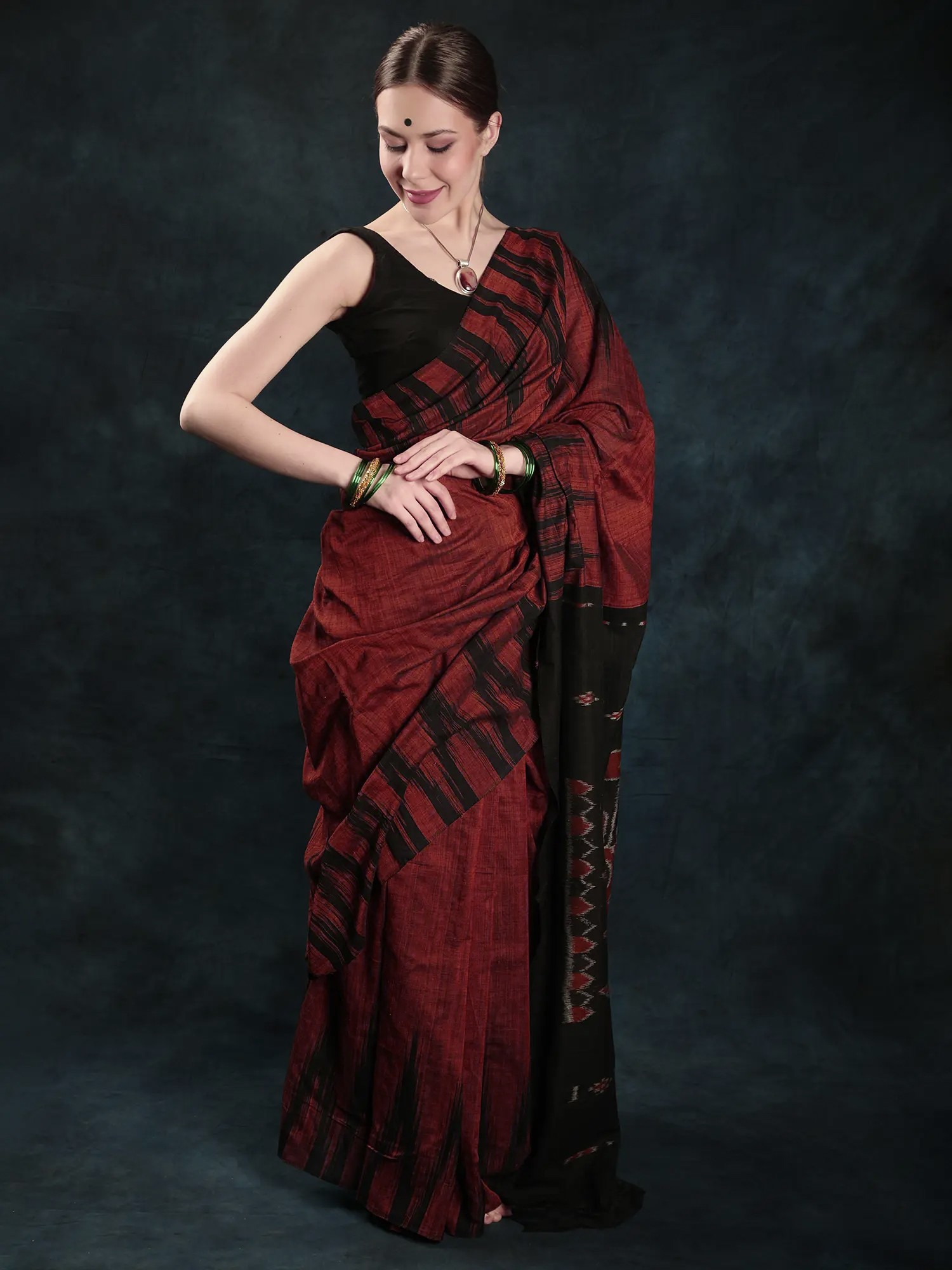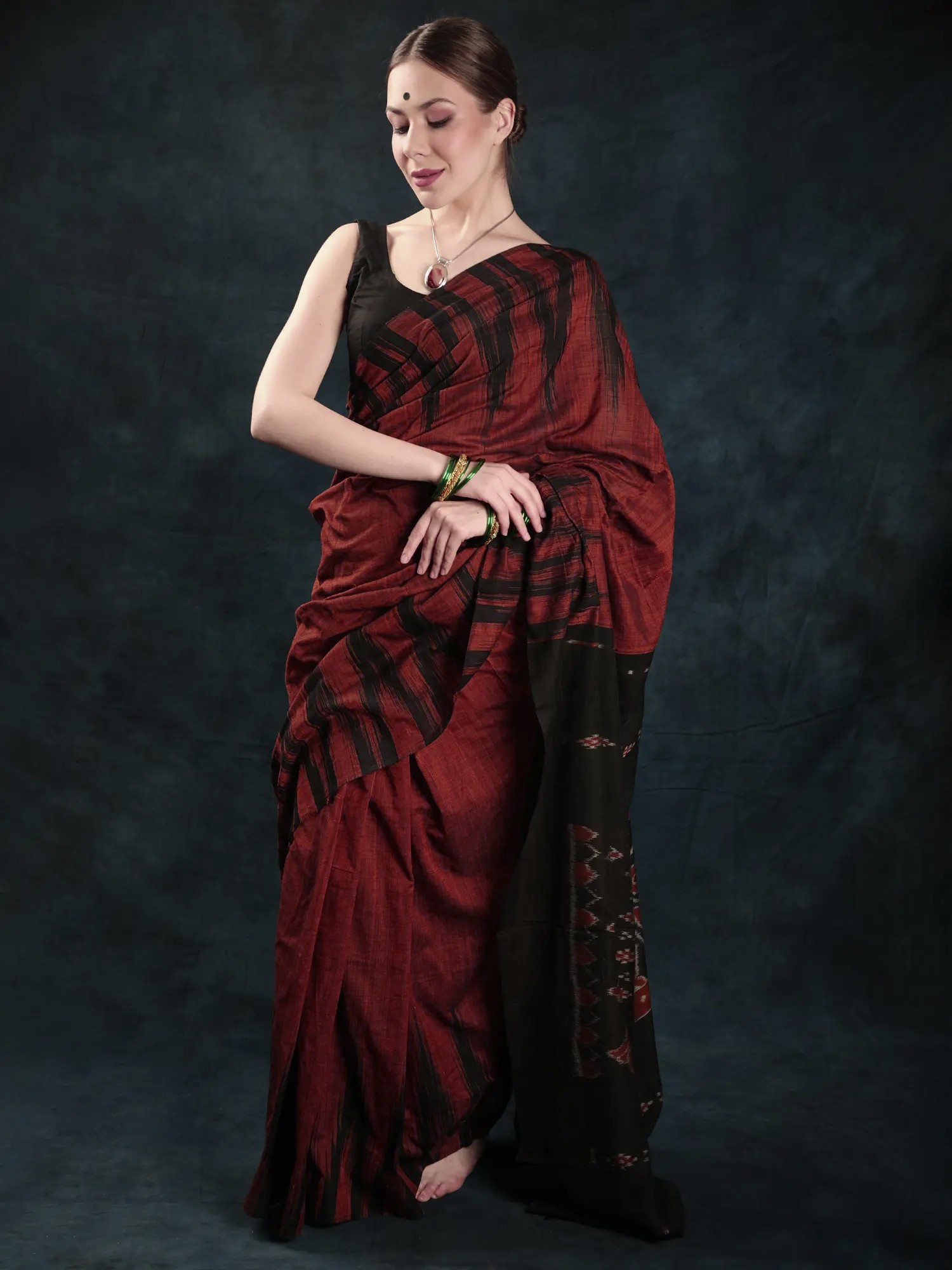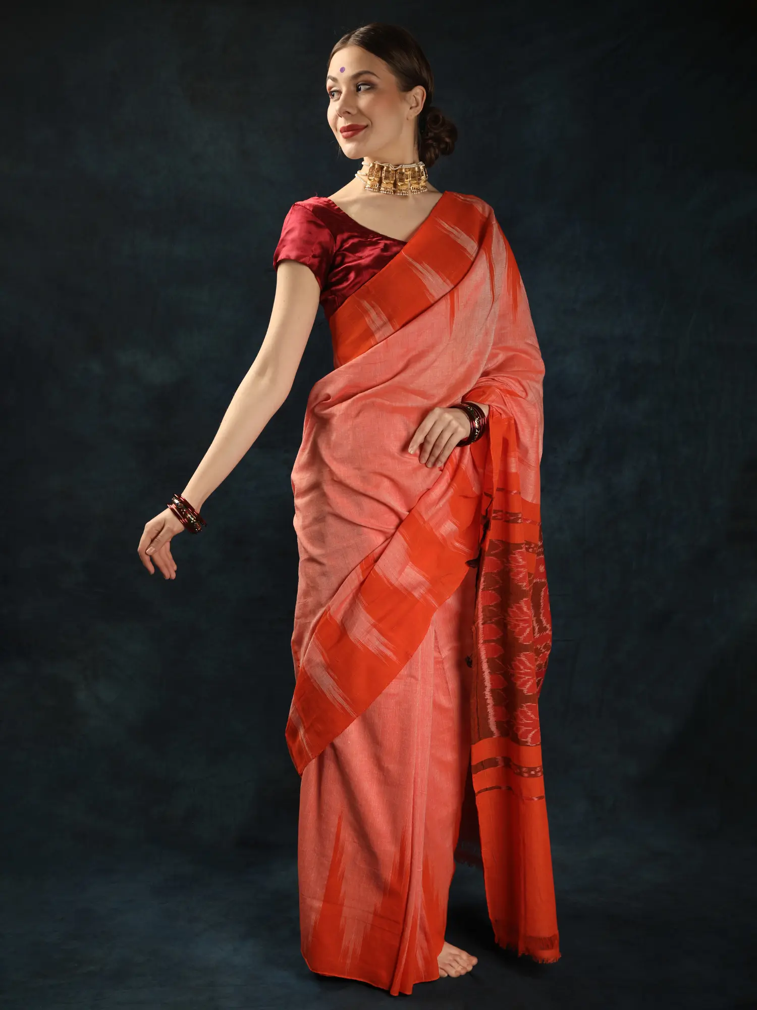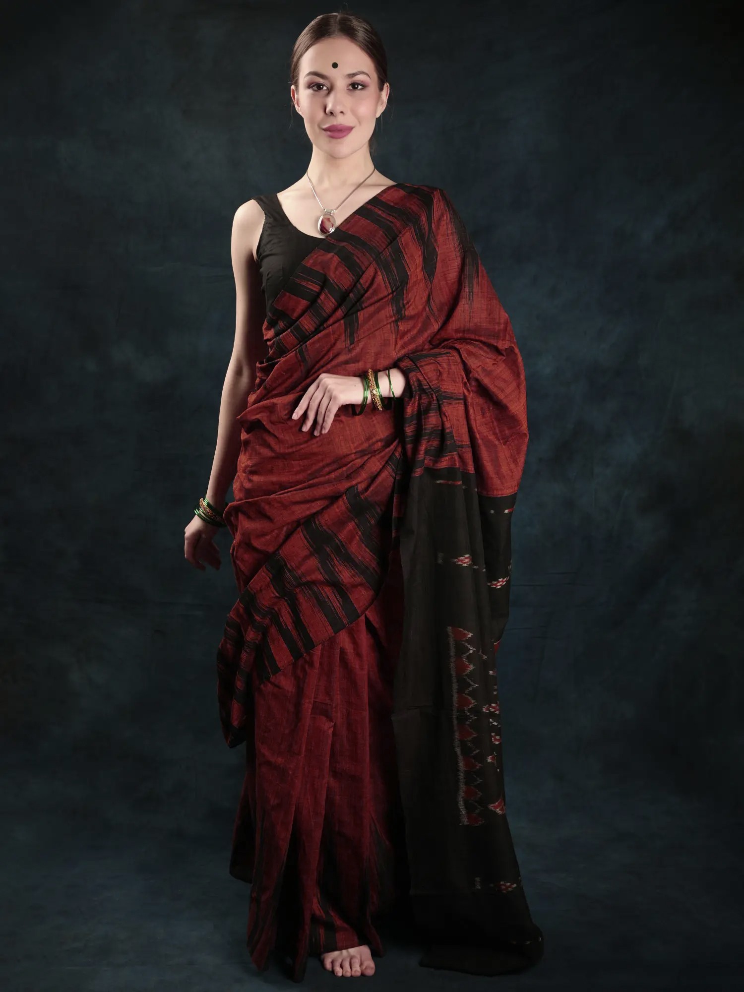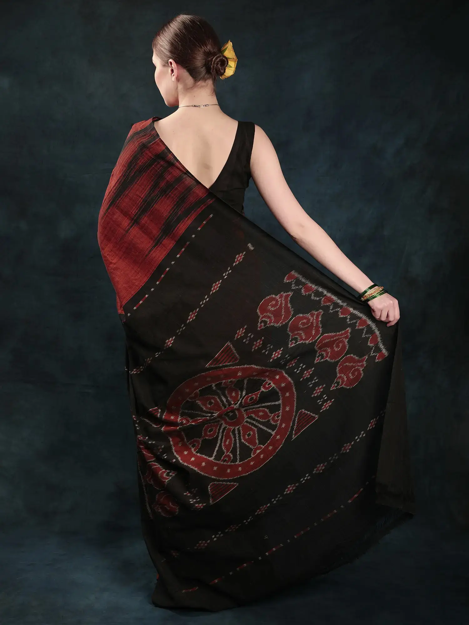 Cedar-Green Sambalpuri Stole from Odisha with Ikat Weave