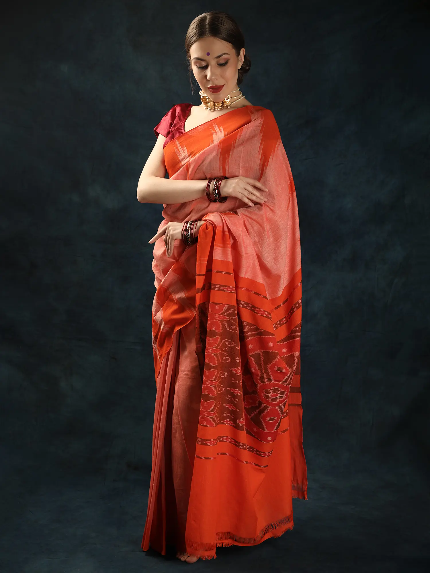 Crafted from pure cotton, this Sambhalpuri saree offers a soft, natural feel against the skin. The fabric drapes effortlessly, creating a graceful silhouette that flatters every figure. Whether you are attending a wedding, a festive celebration, or a formal gathering, this saree will ensure you stand out with its understated elegance and the richness of its artisanal weave. The subtle variations in the Ikat patterns ensure that each saree is a unique masterpiece, carrying the individual touch of the artisan who created it.